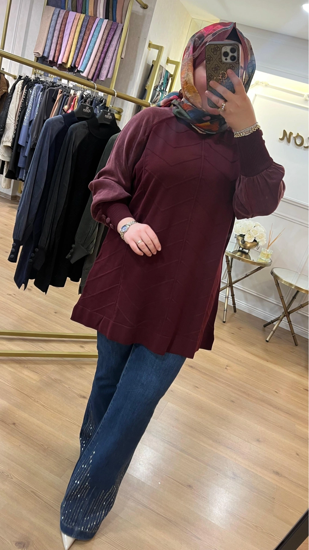 SOLİS İncili Taşlı Leopar Angora Tunik