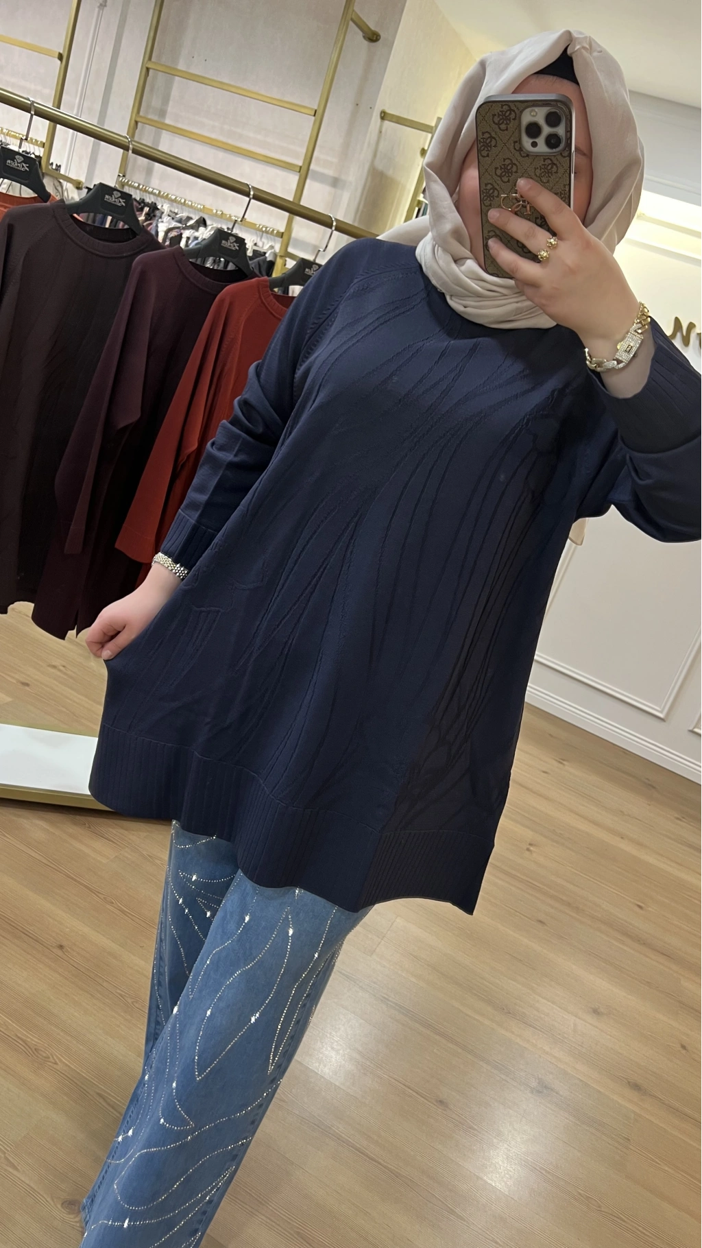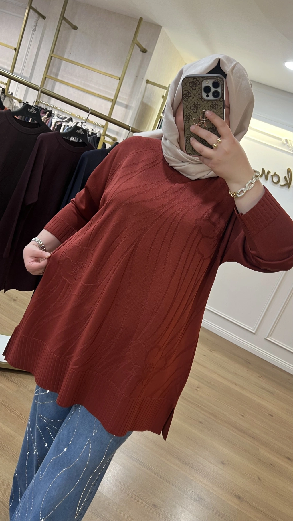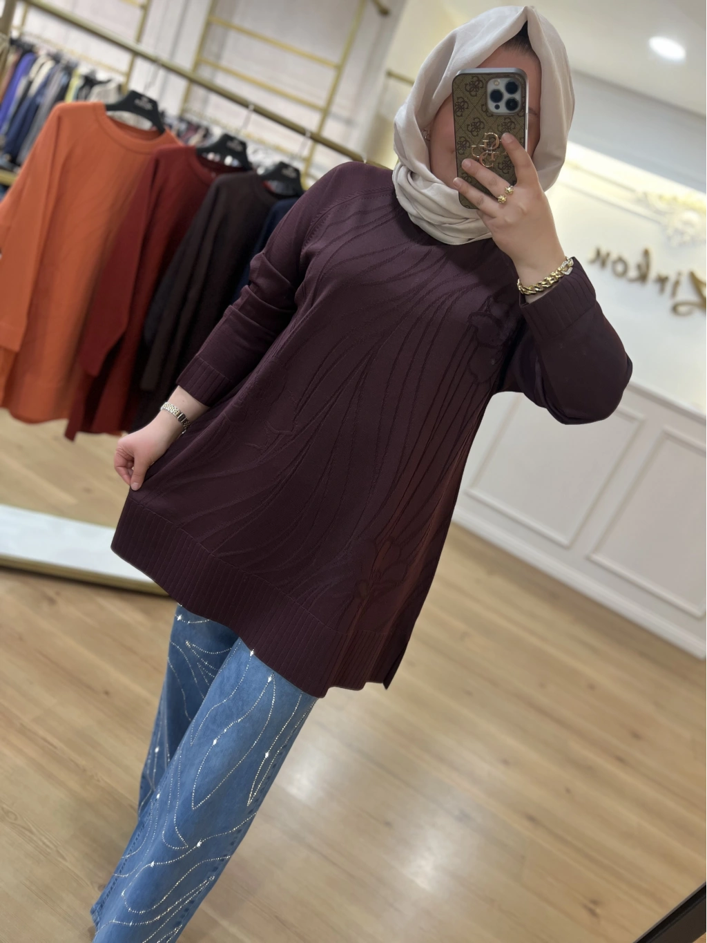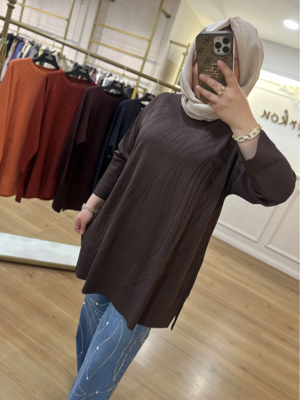 SOLİS İncili Taşlı Leopar Angora Tunik