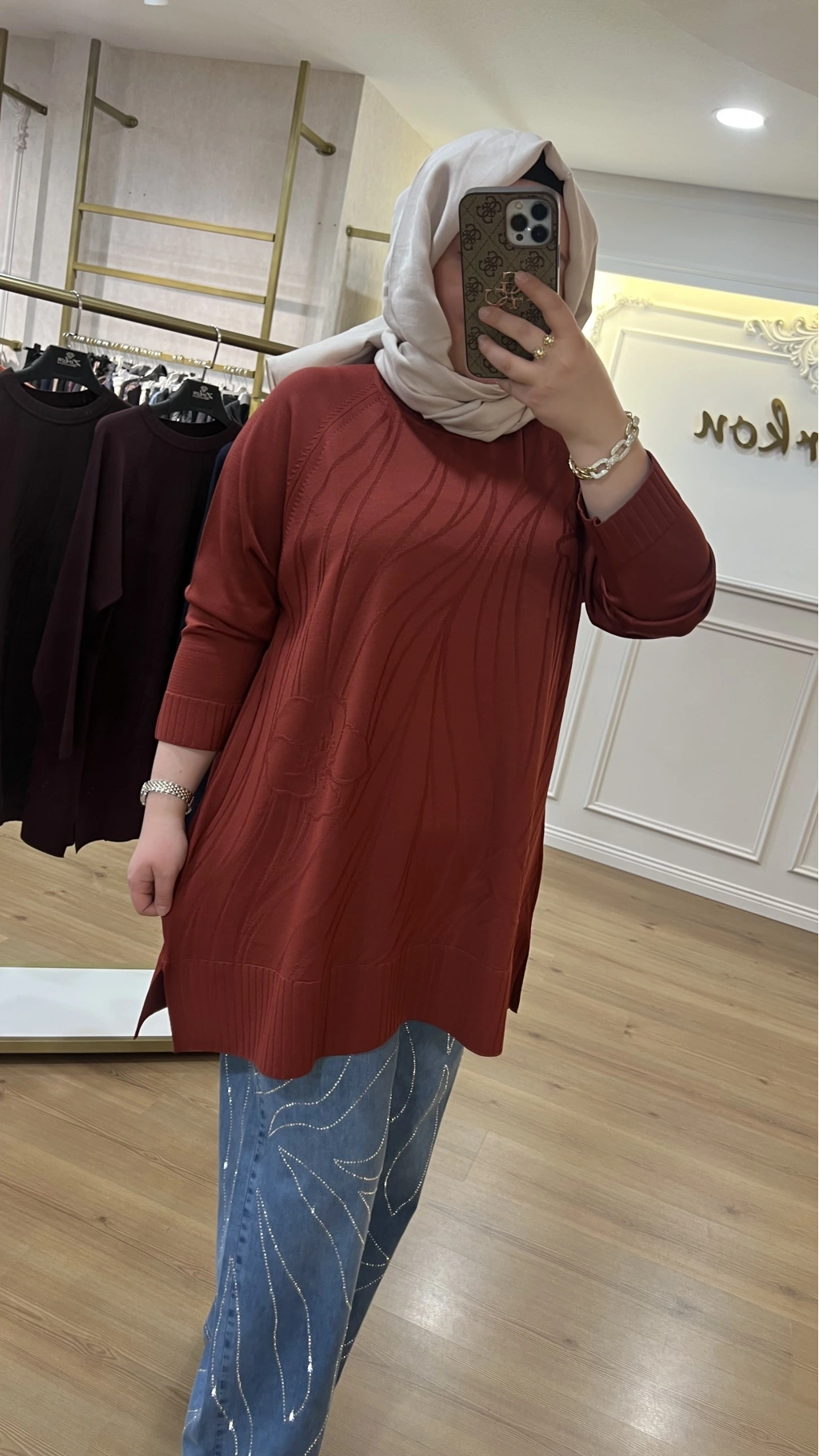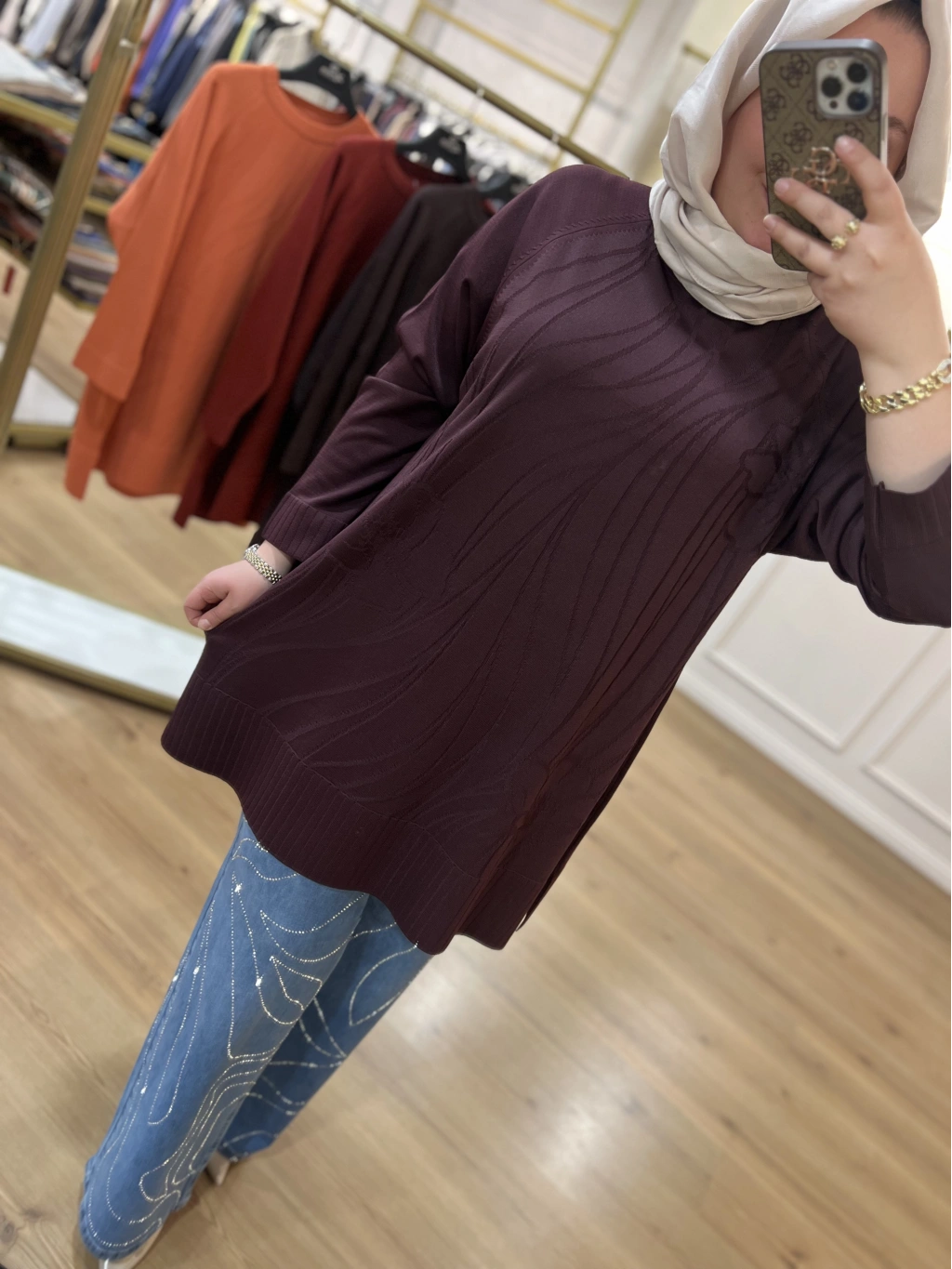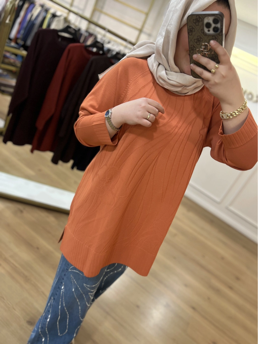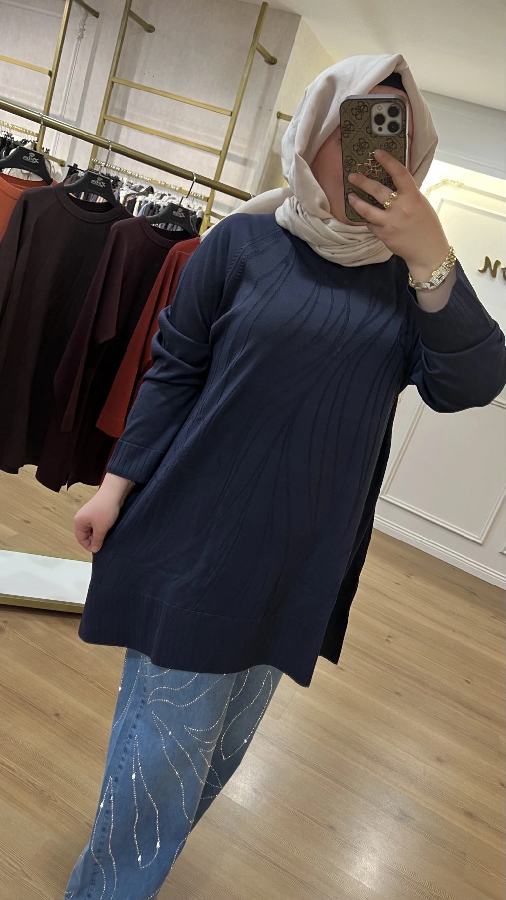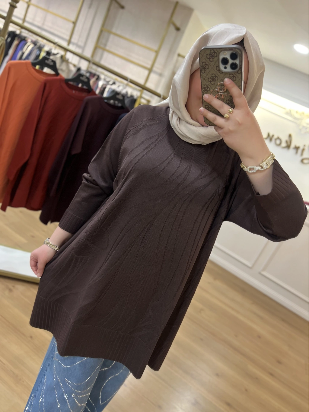 SOLİS İncili Taşlı Leopar Angora Tunik