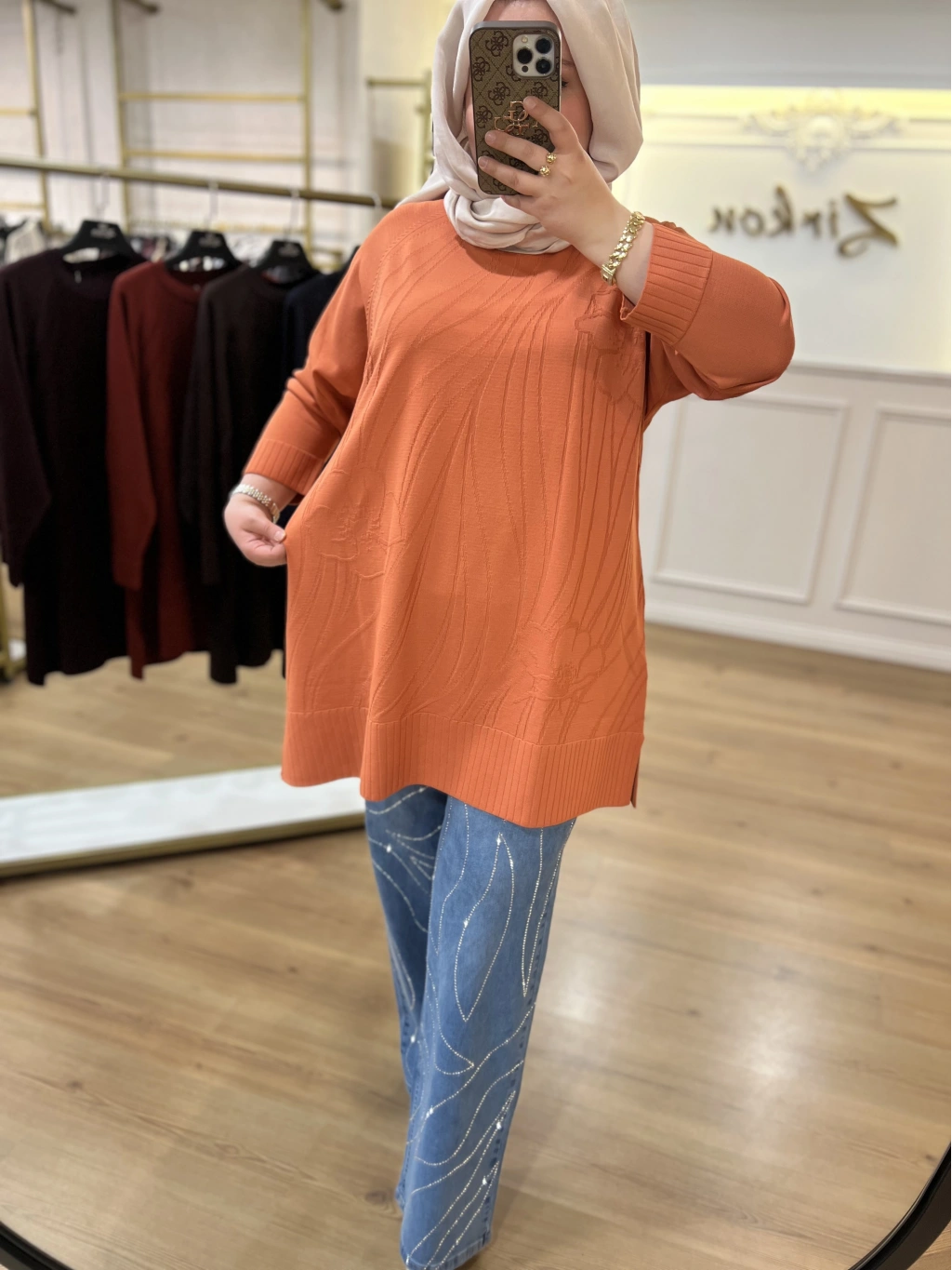 Çiçek Kabartma Merserize Tunik