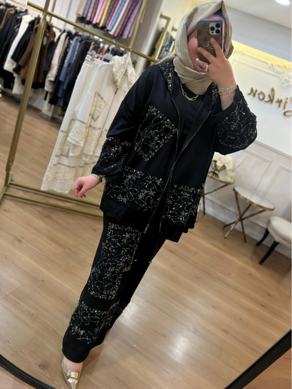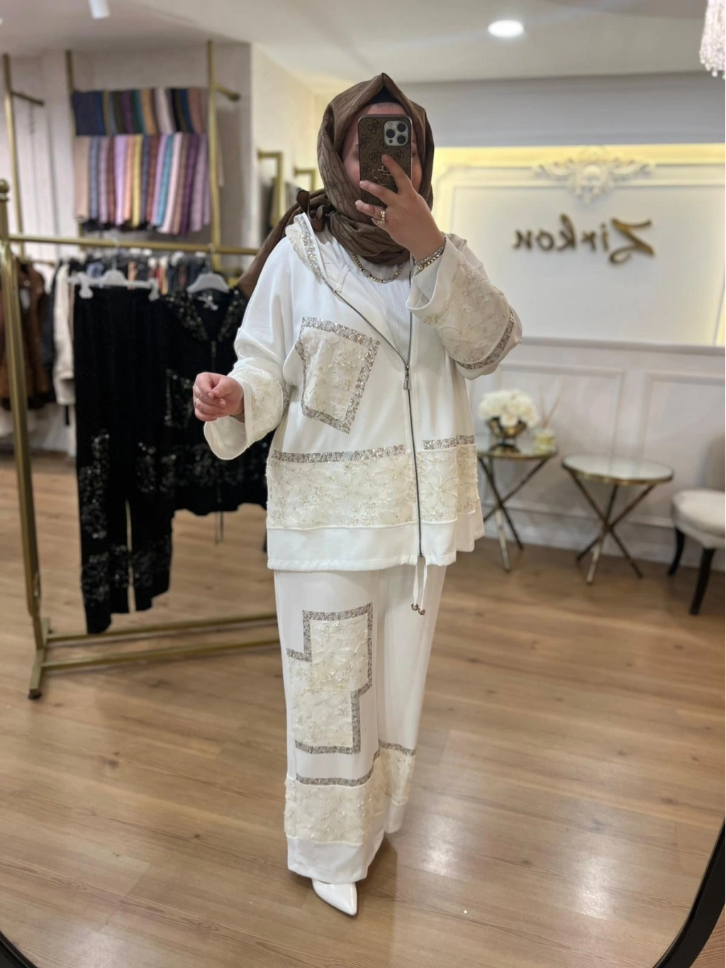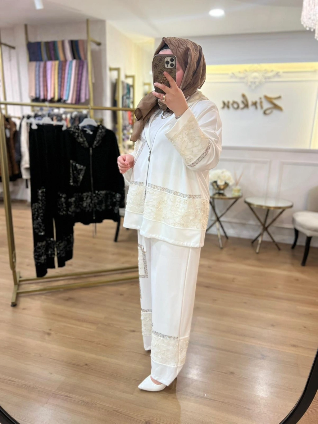 MEVA BY PUREVA Dantelli Nakışlı Ceketli Takım( BÜYÜK BEDEN)