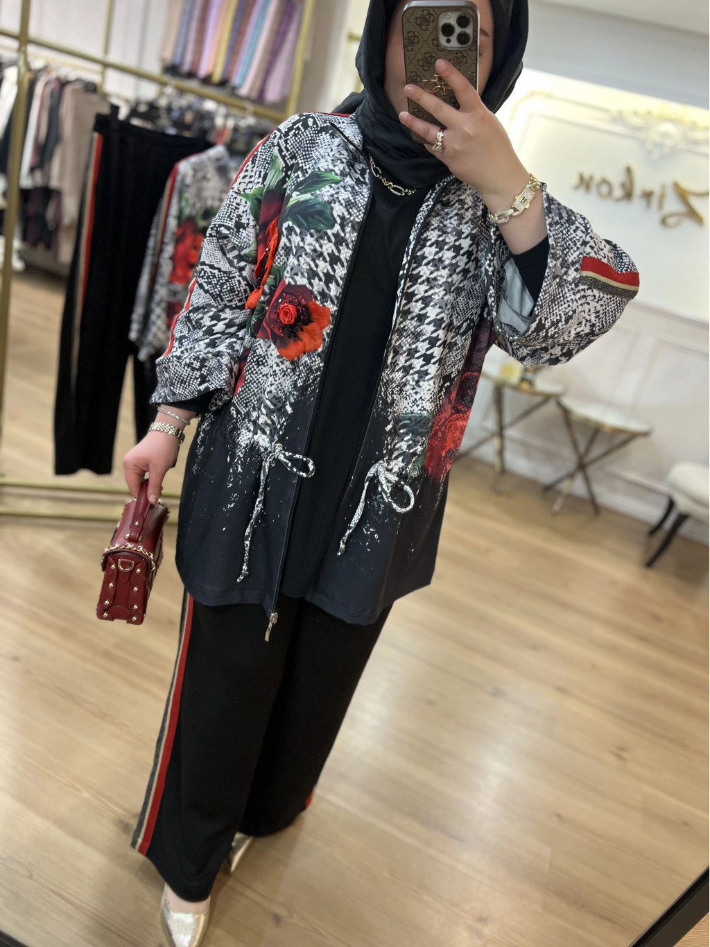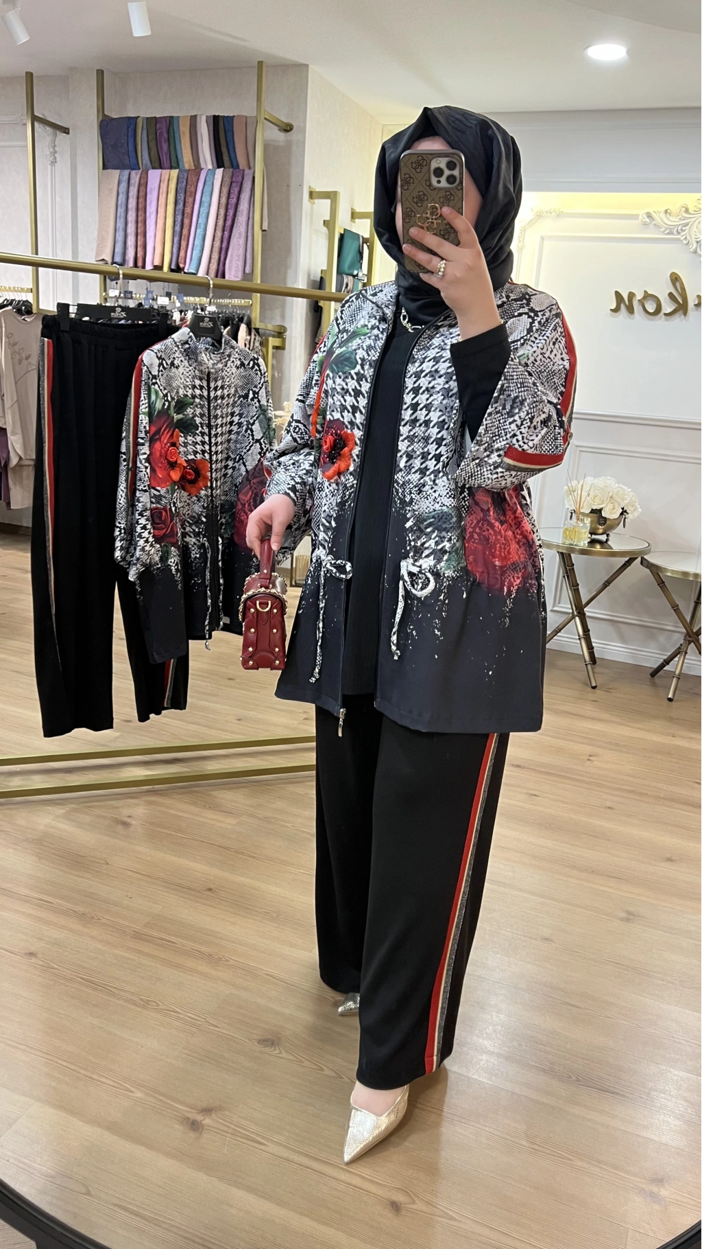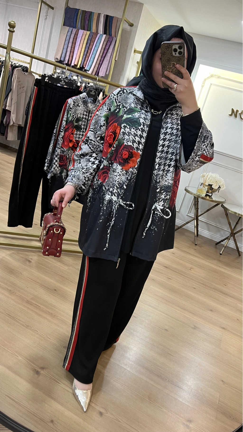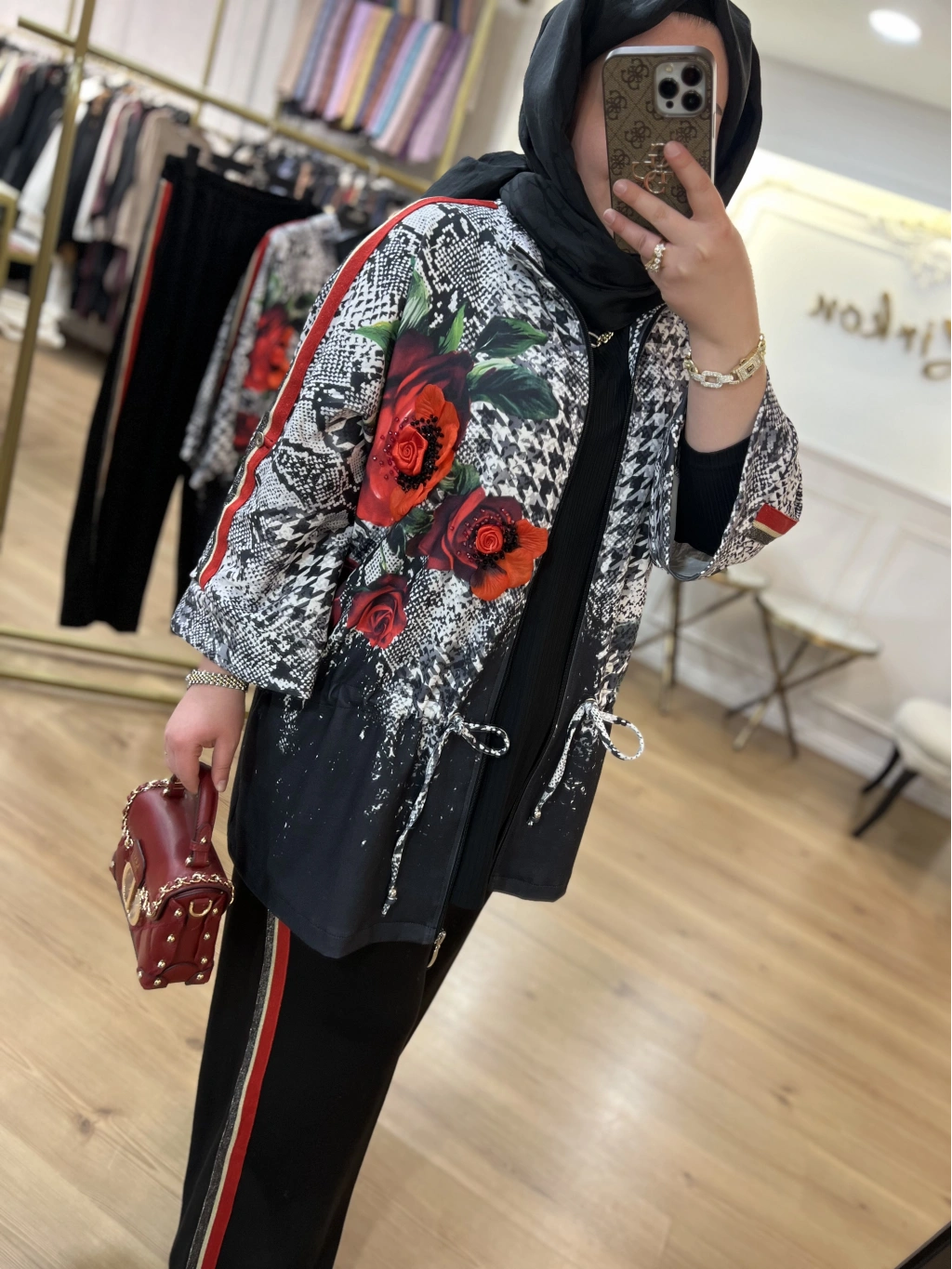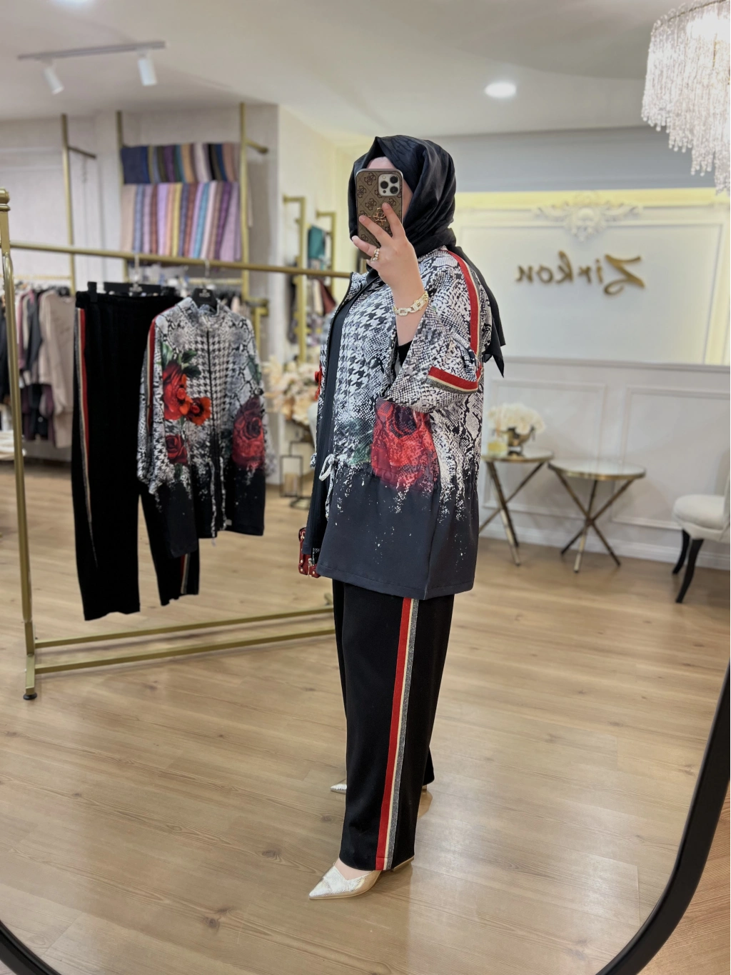 ADN Dalga ve Çiçek Desenli Merserize Tunik (BÜYÜK BEDEN)
