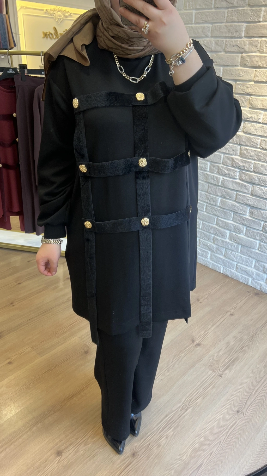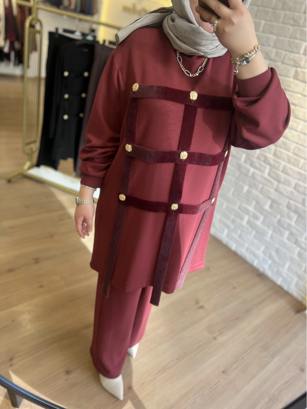 Pureva Boncuk İşlemeli Şardon Ceketli Takım