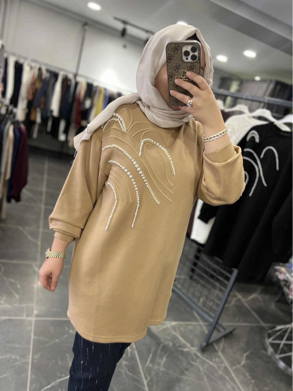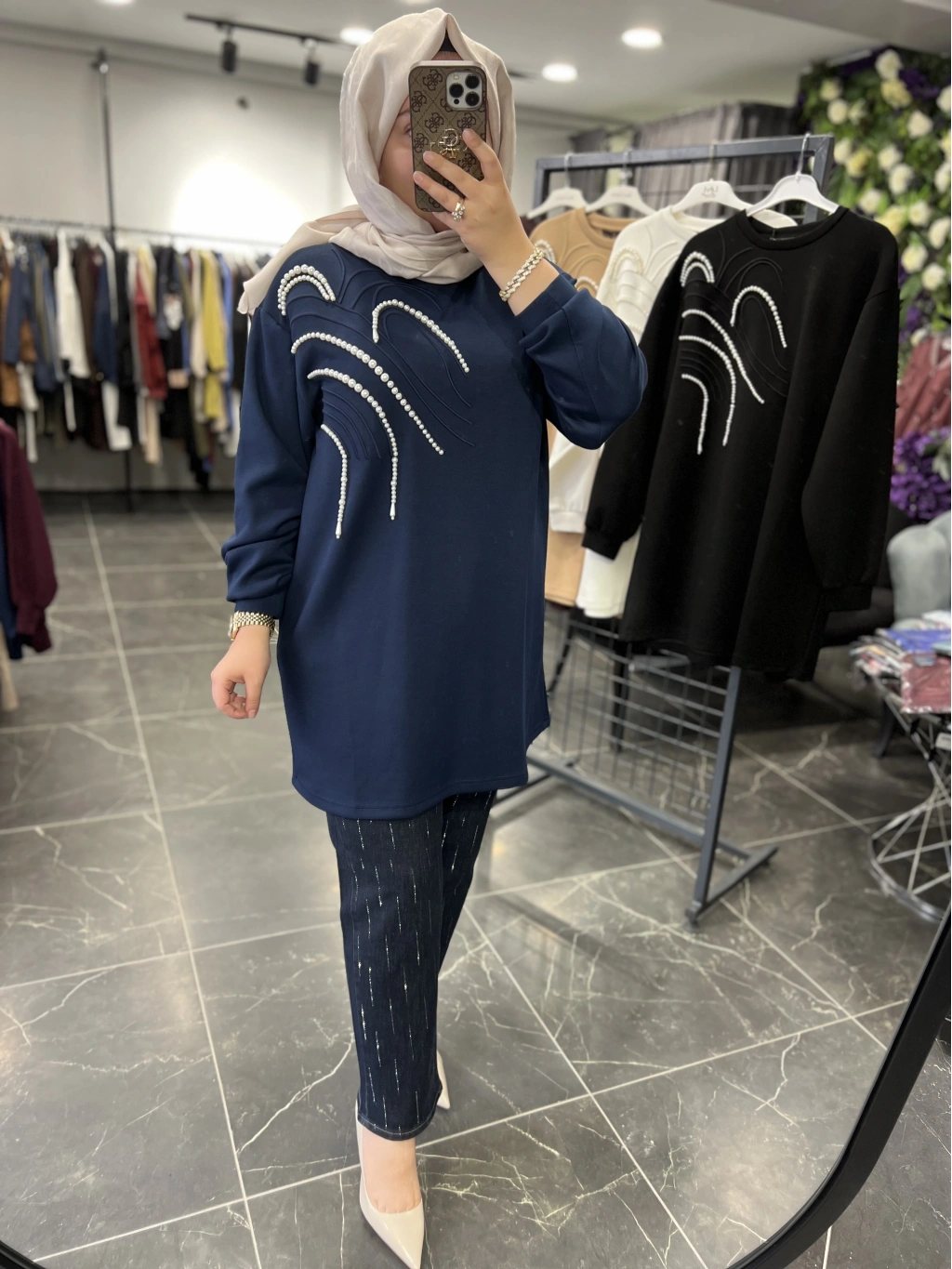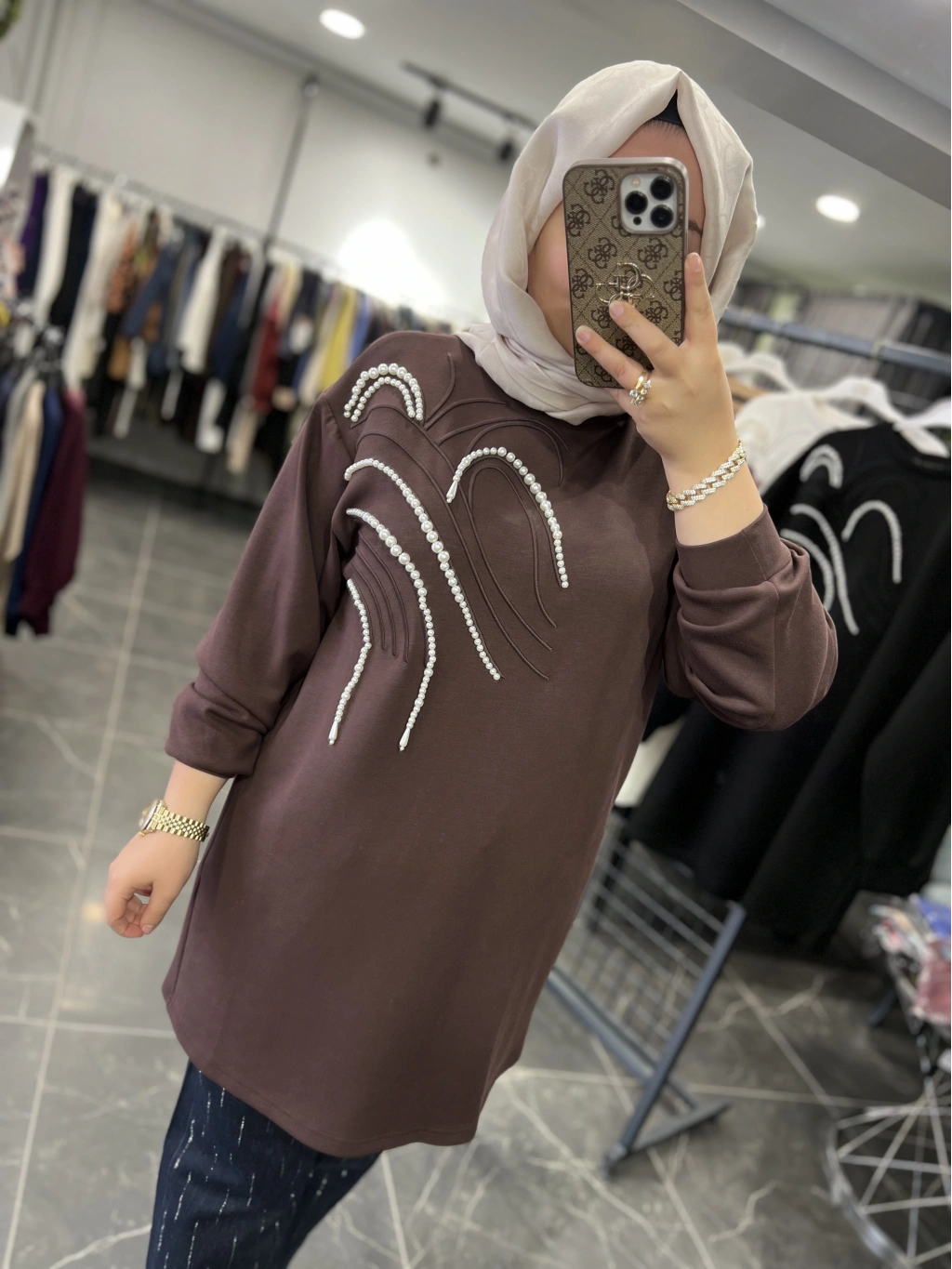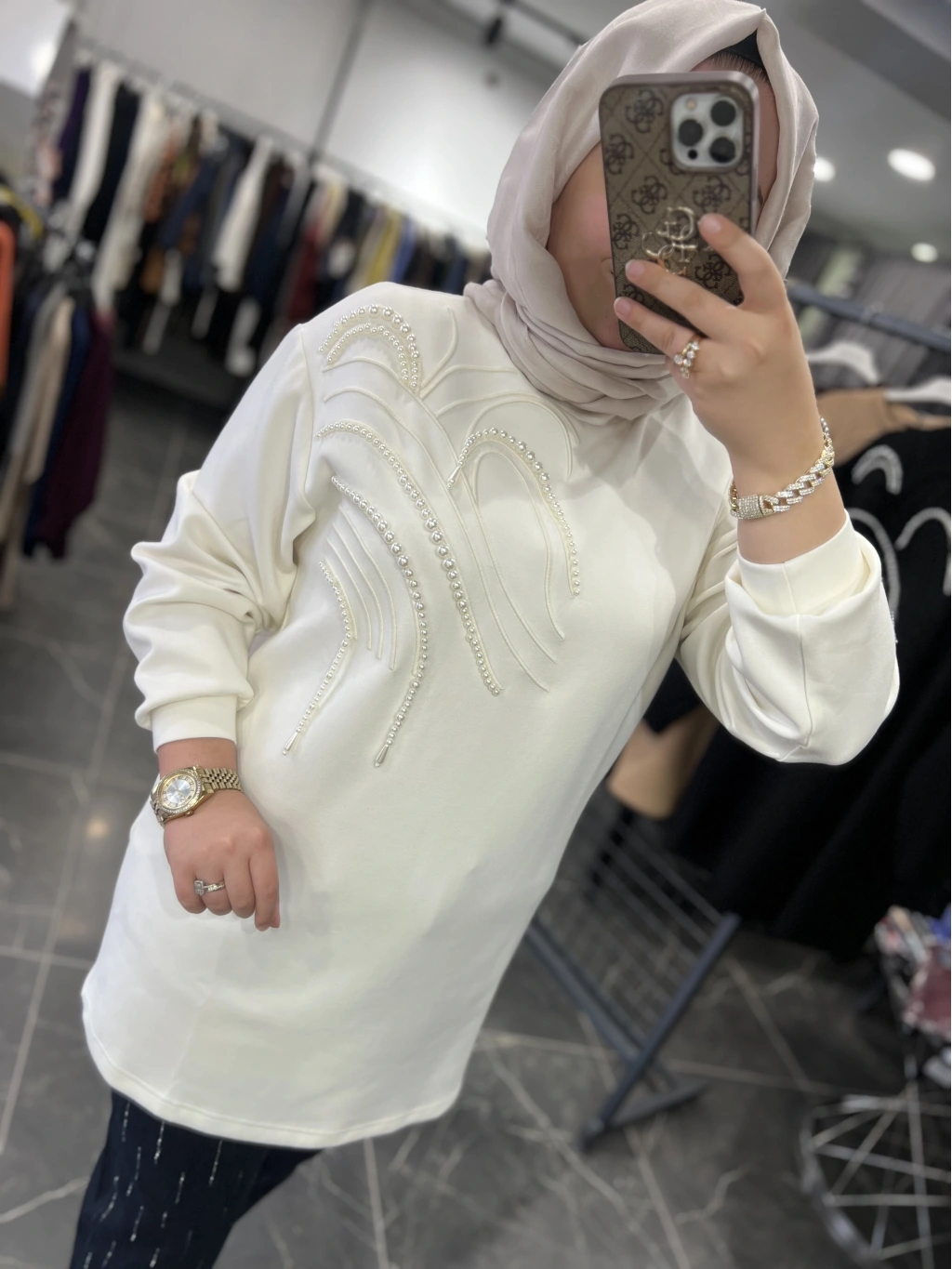 Meva By Pureva Püskürtme Taşlı ve İncili Pamuk Gömlek