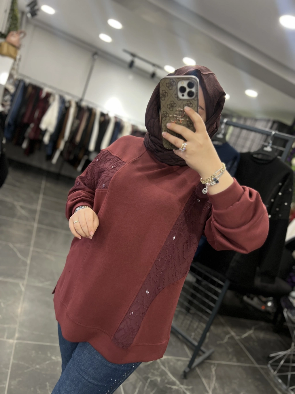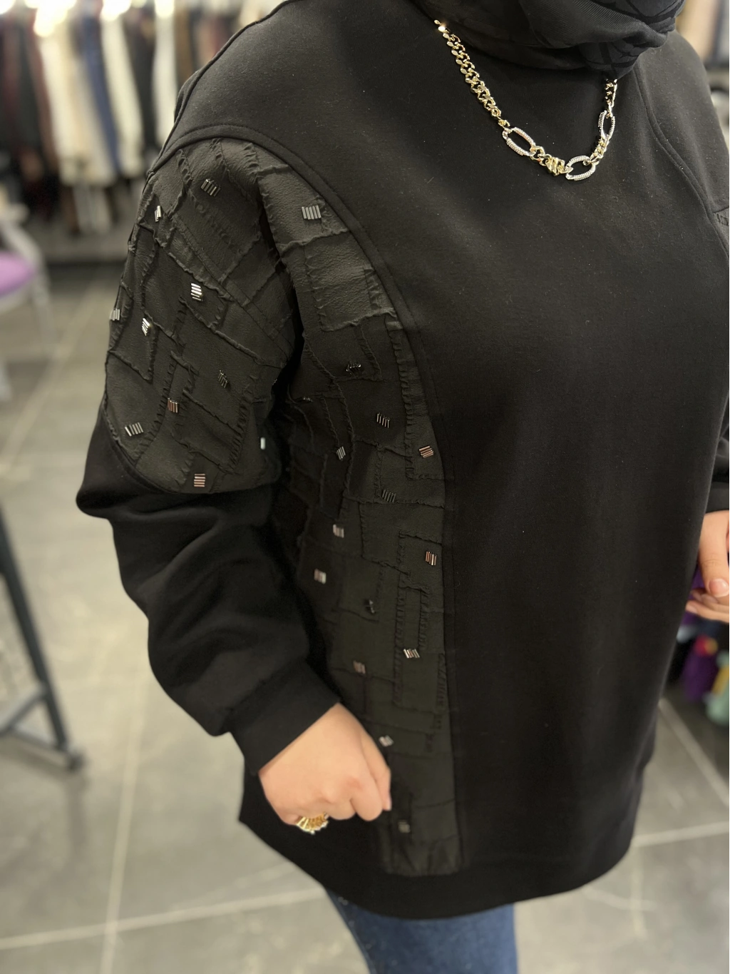Levidor Jakarlı Boncuk İşlemeli Sweat