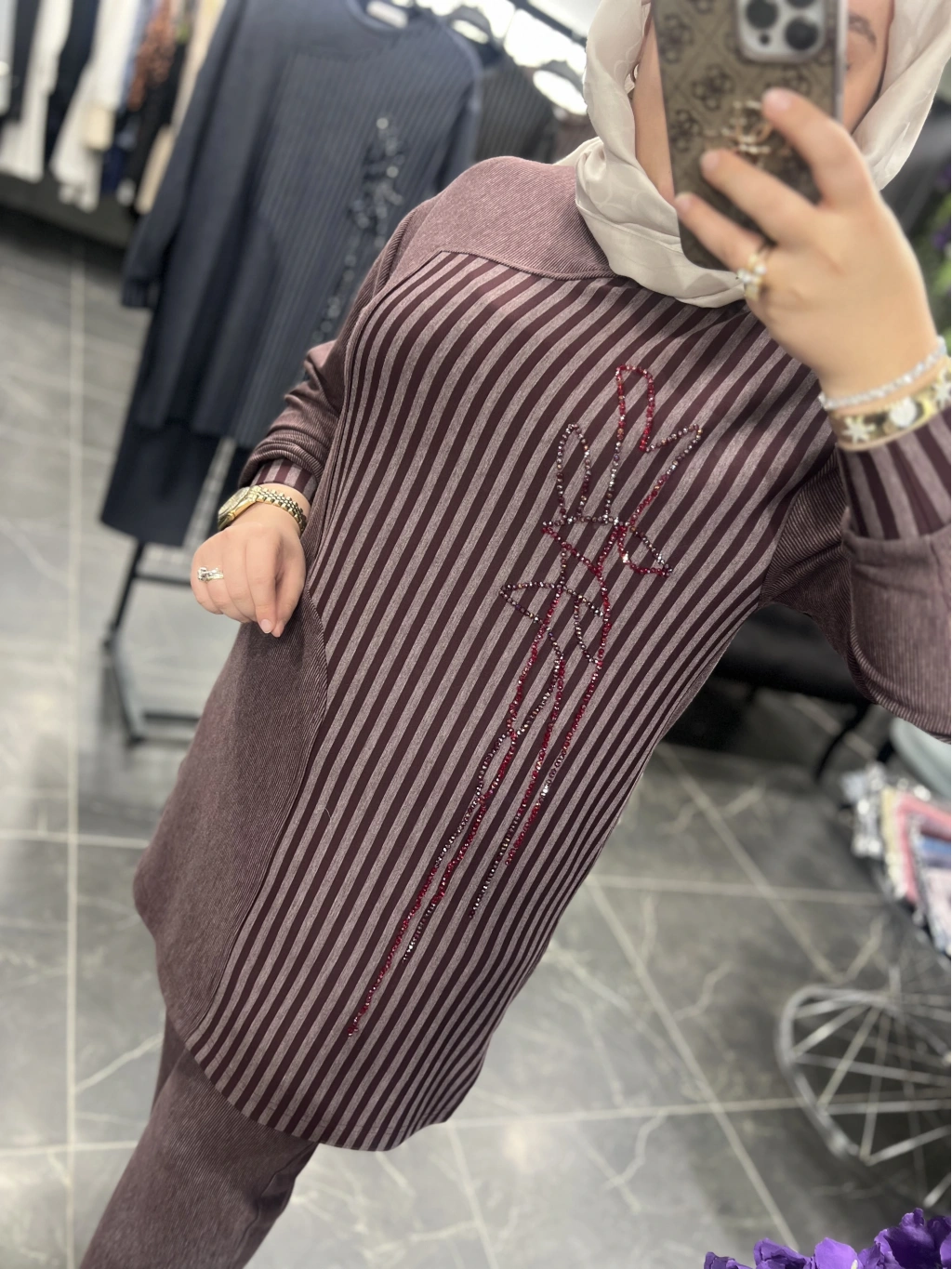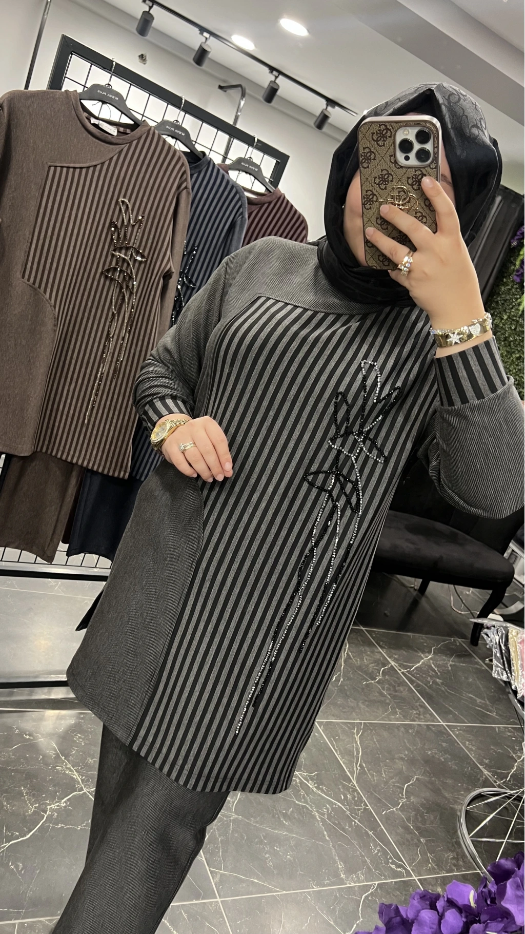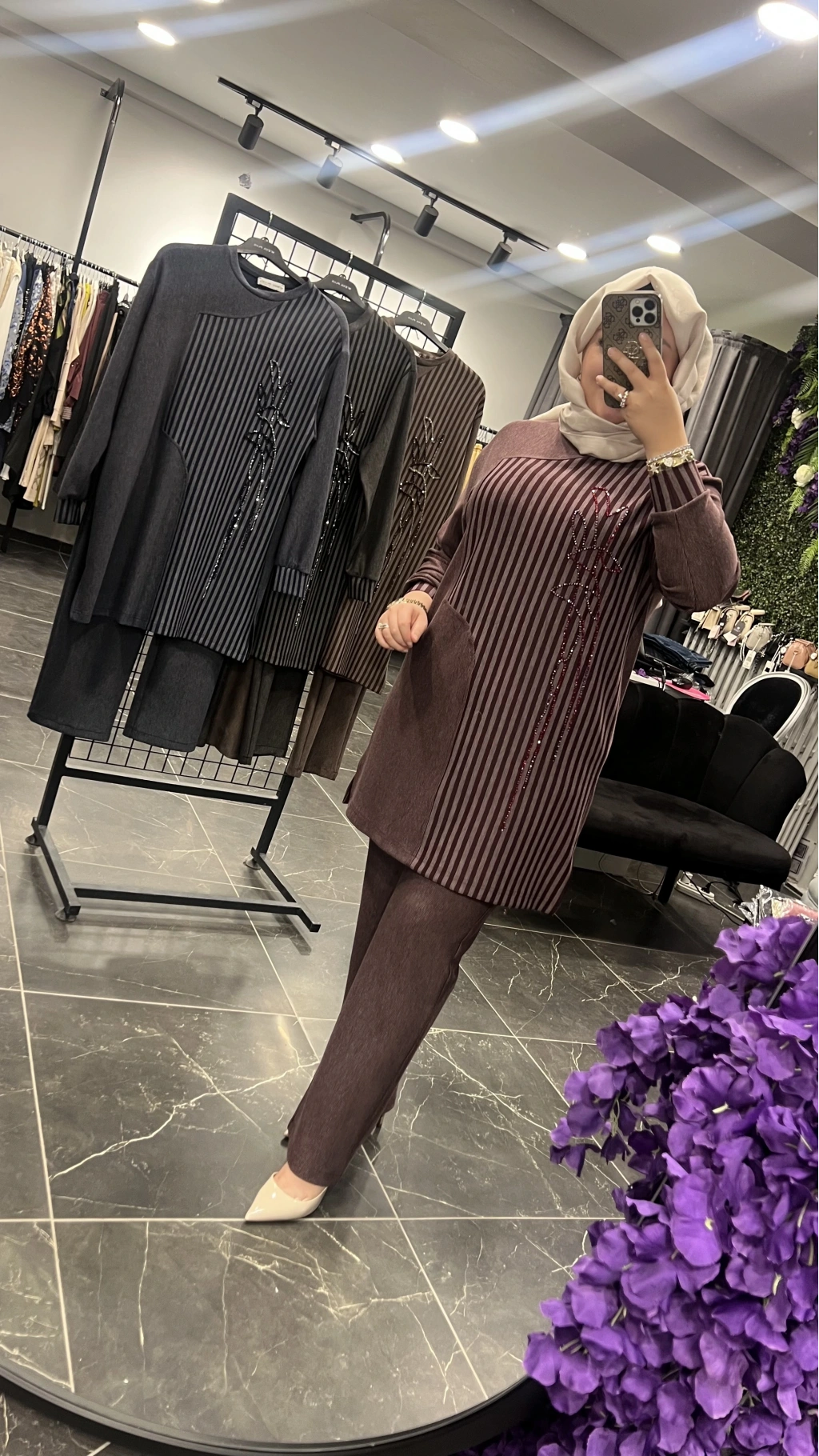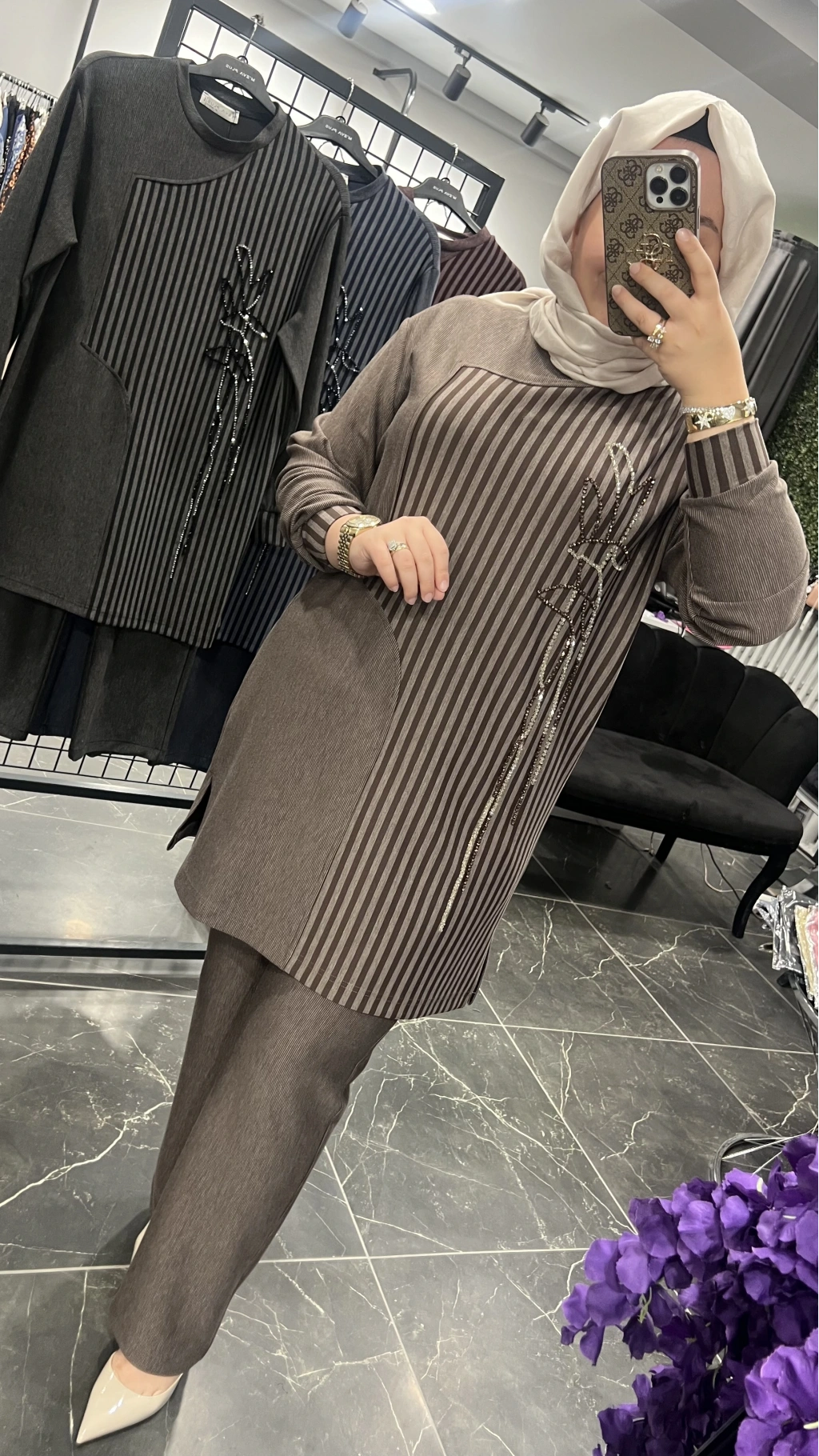 MEVA By Pureva Çizgili İşlemeli BÜYÜK BEDEN Takım