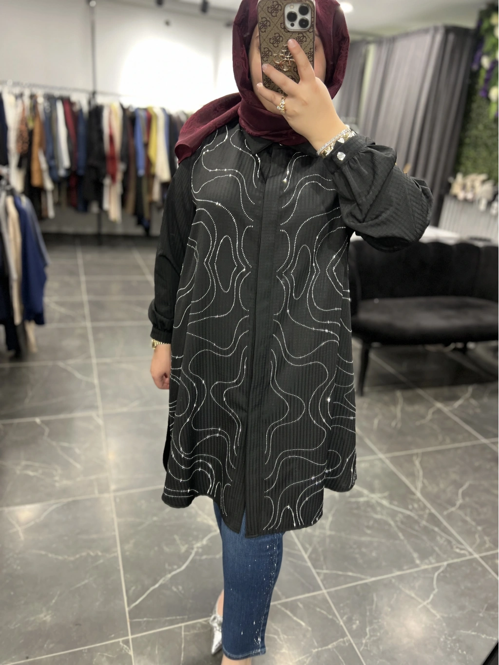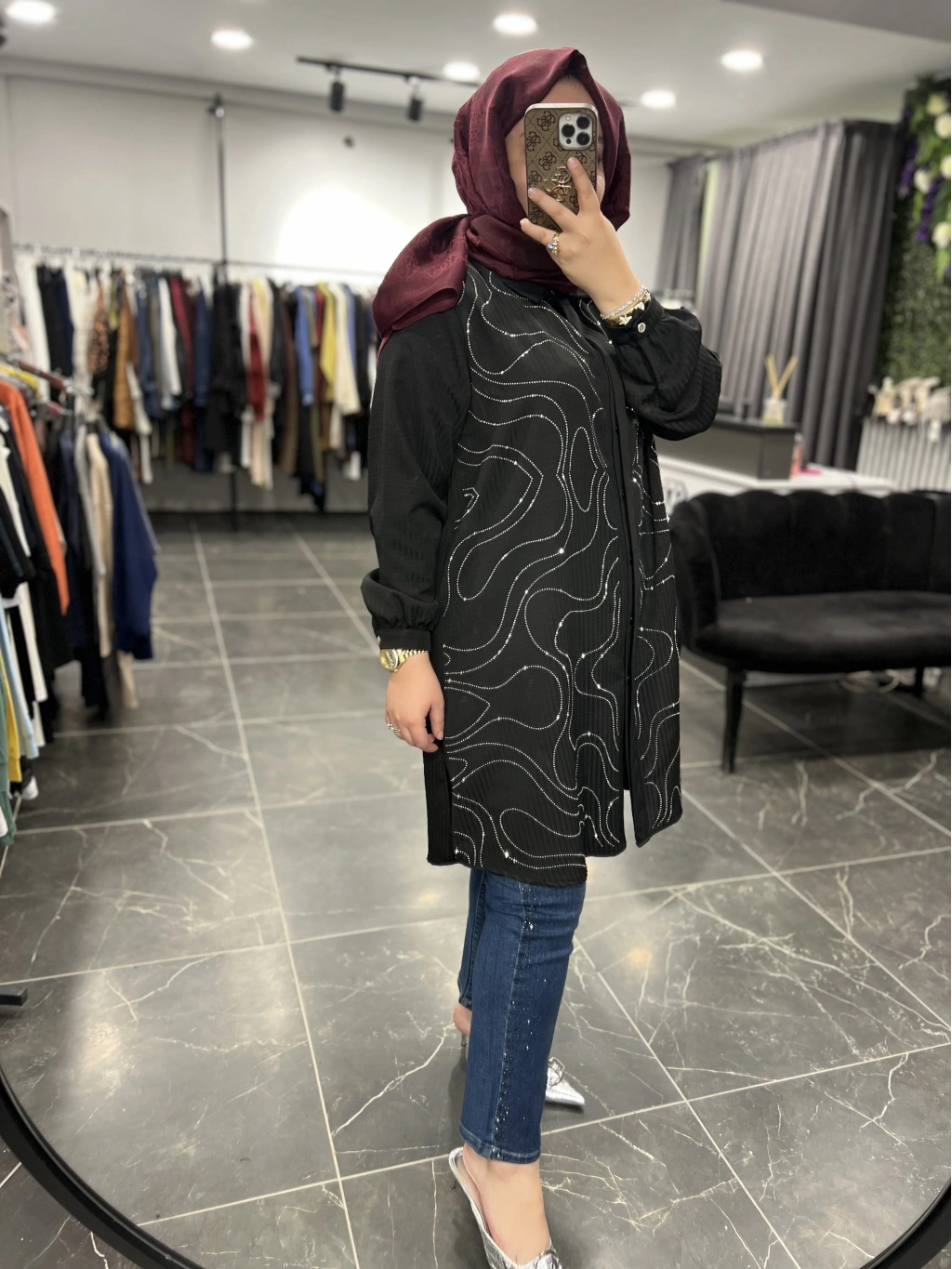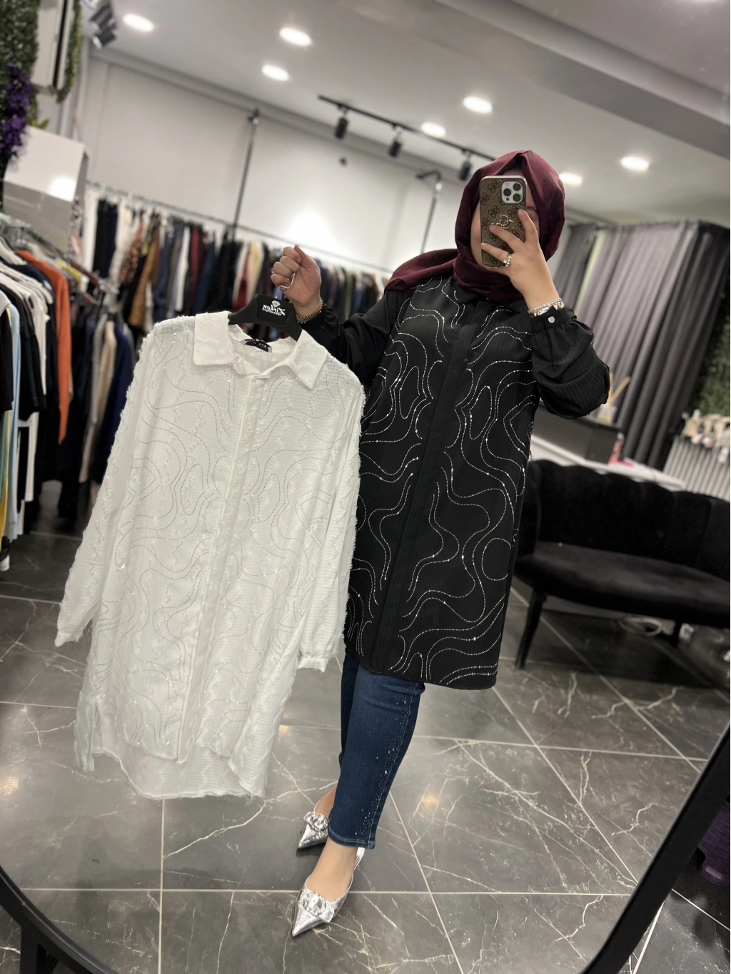 Meva By Pureva Püskürtme Taşlı ve İncili Pamuk Gömlek