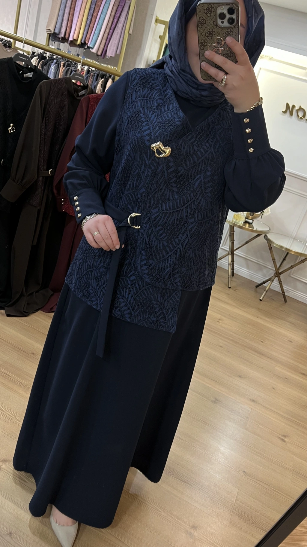 Dantel yelek astarlıdır bel büzgüsü isteğe bağlıdır broş detayı mevcuttur