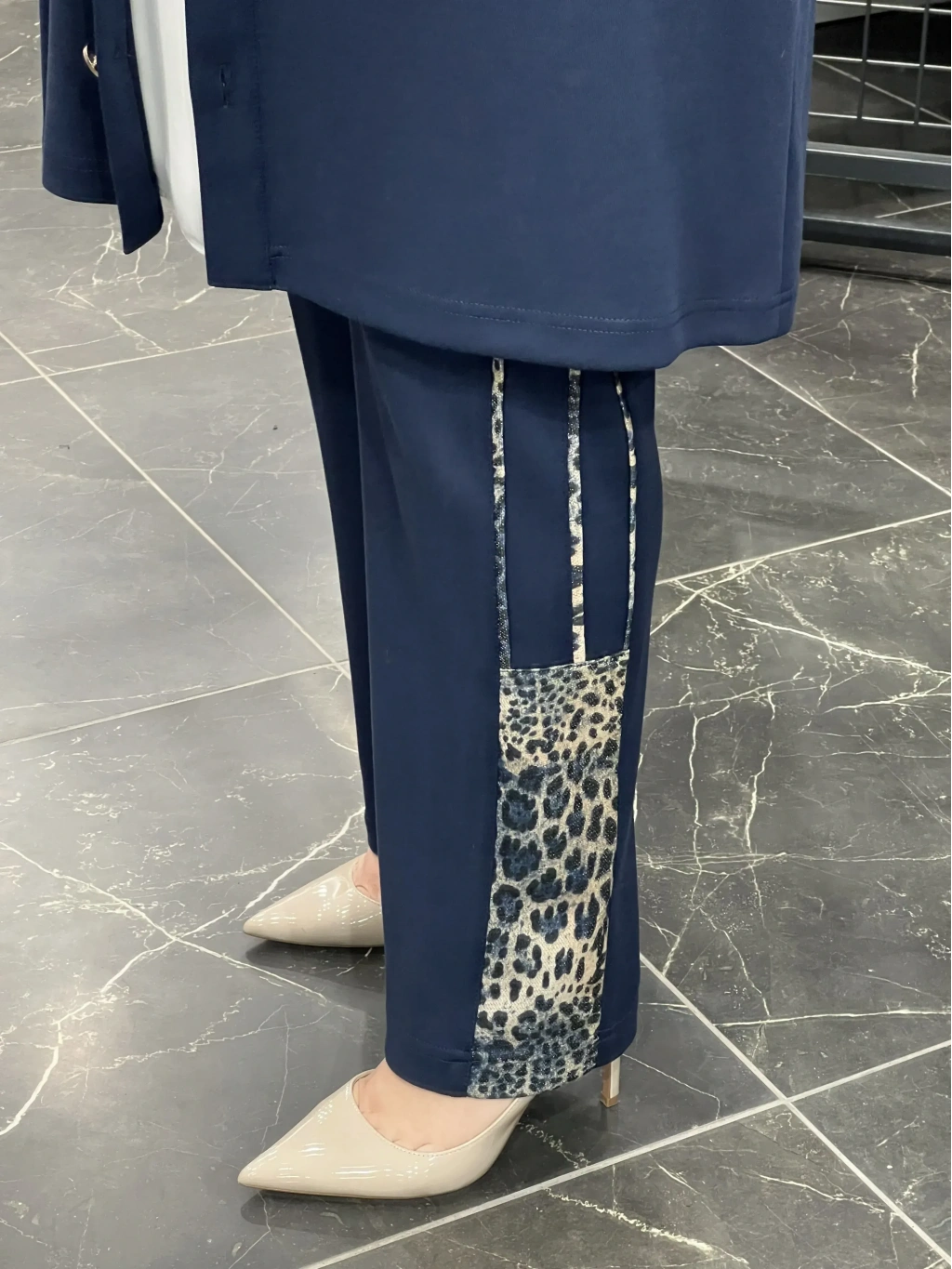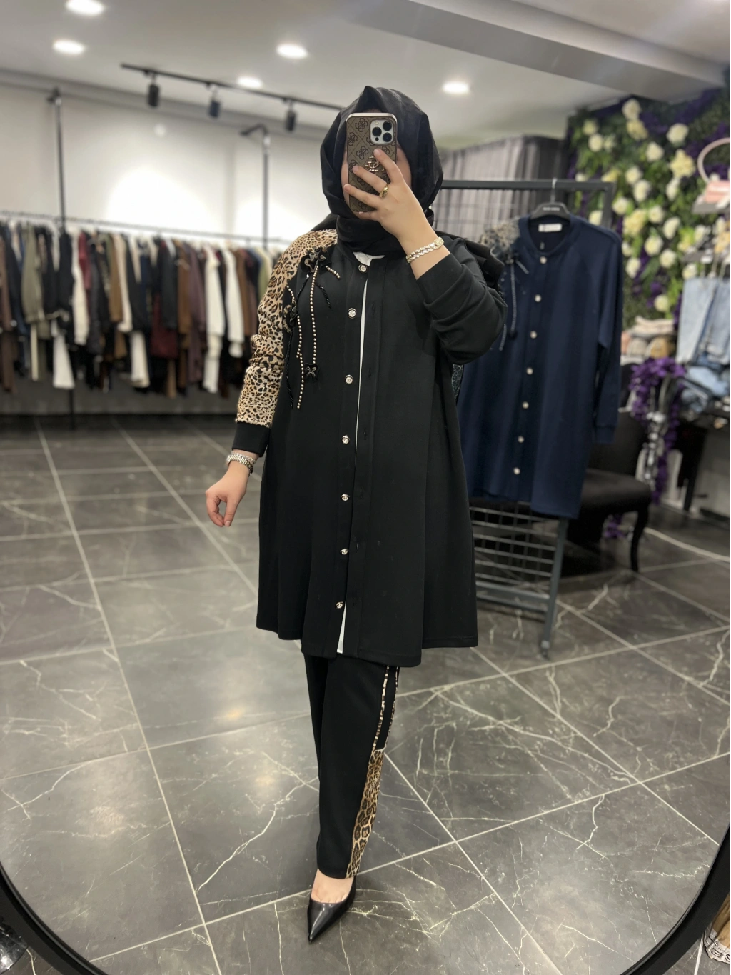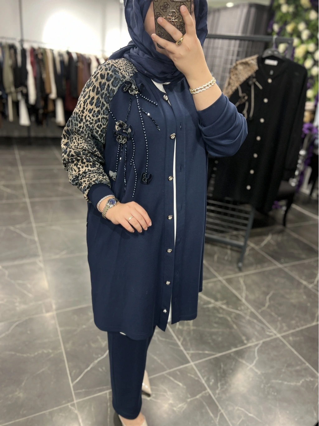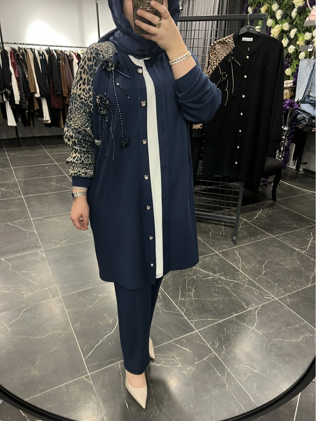 Takım ceket ve pantolon olmak üzere ikilidir.İpek modal kumaştır,full likraya sahip konforlu ve zengin görünümlü bir parçadır.