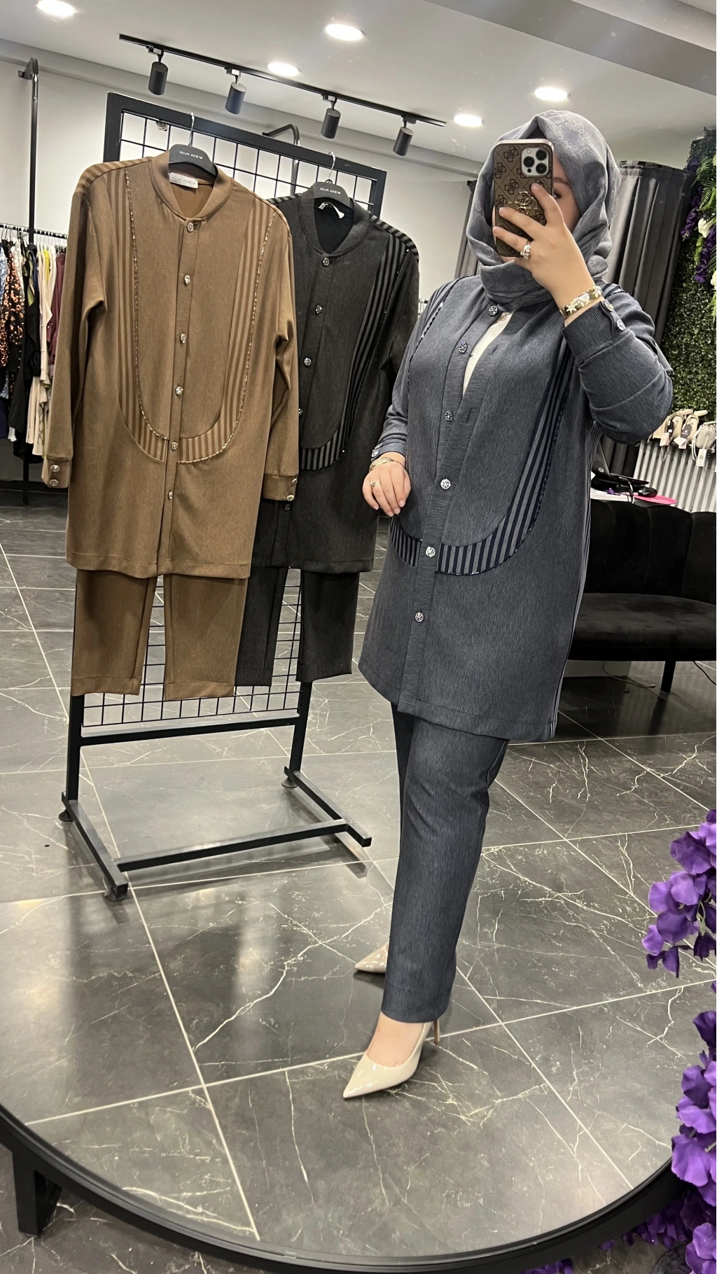 MEVA BY PUREVA İncili Jakarlı Üçlü Takım