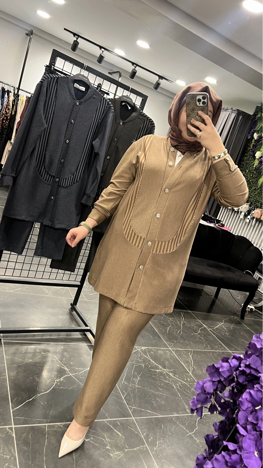 MEVA PLUS BY PUREVA Çizgili İşlemeli Ceketli Takım