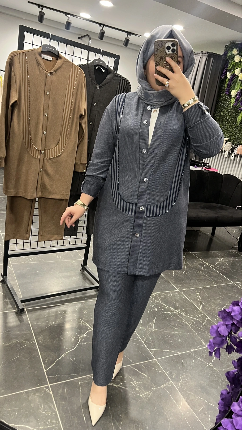 MEVA BY PUREVA Boncuk İşlemeli Yelekli Üçlü Takım