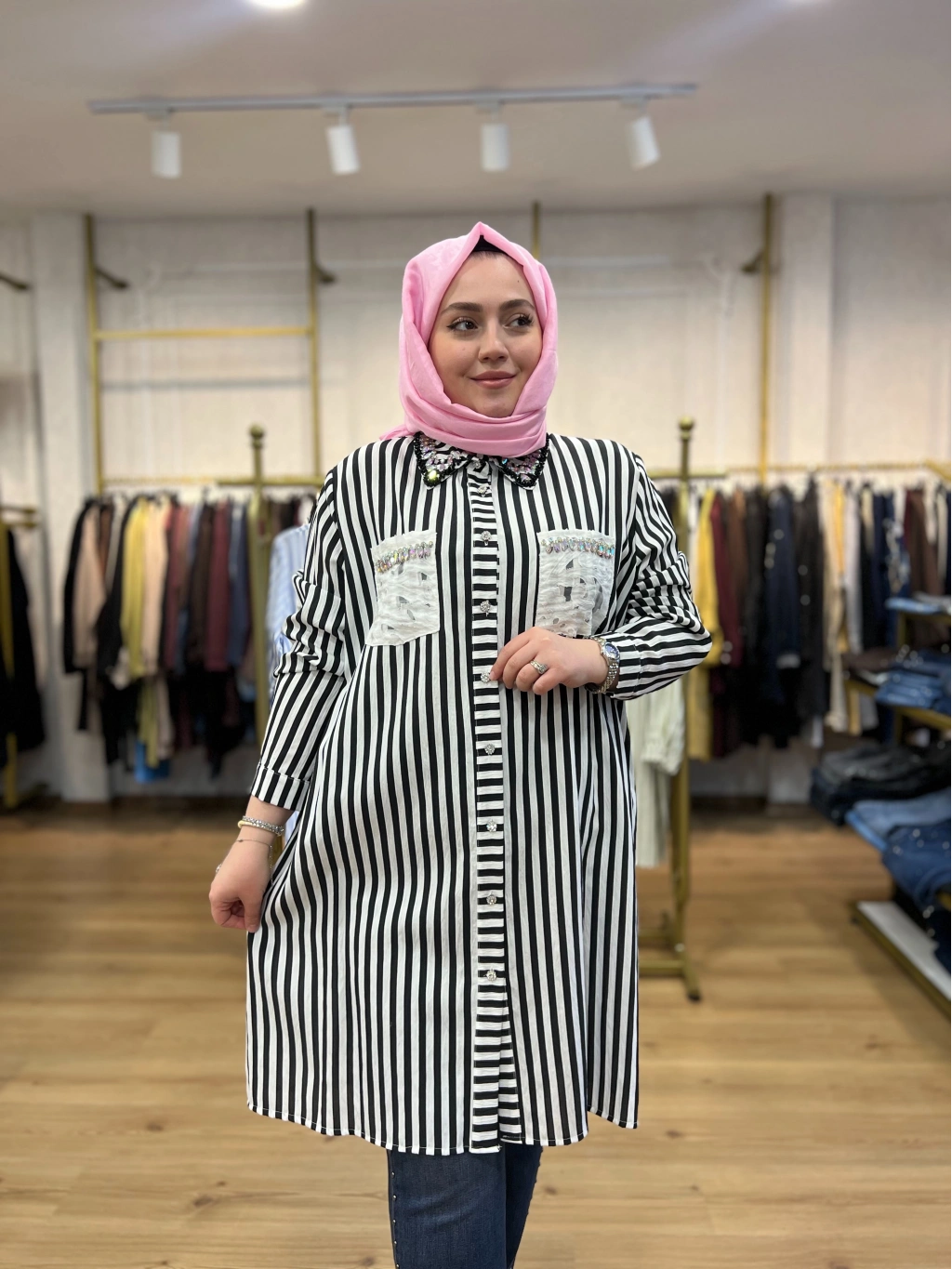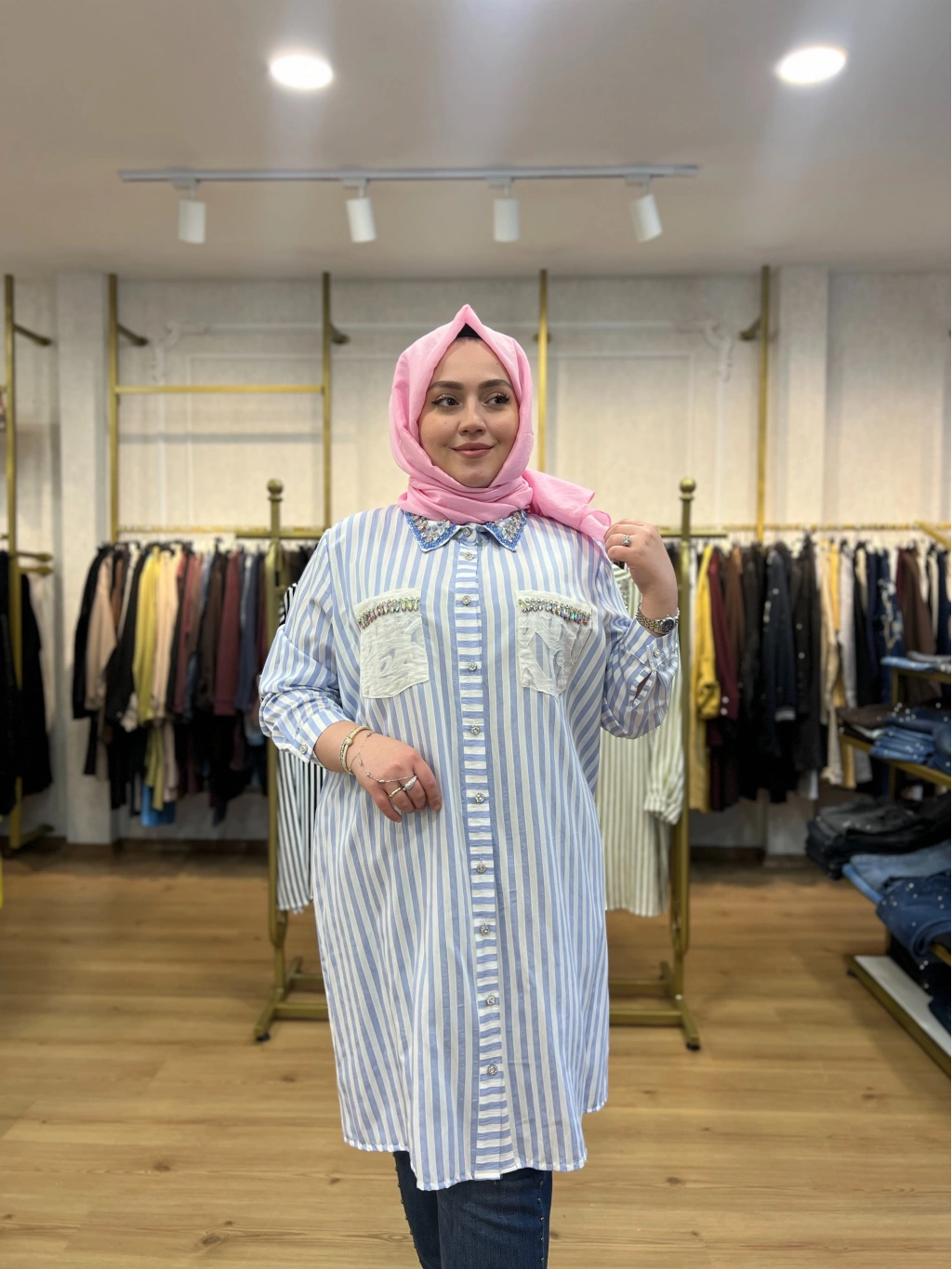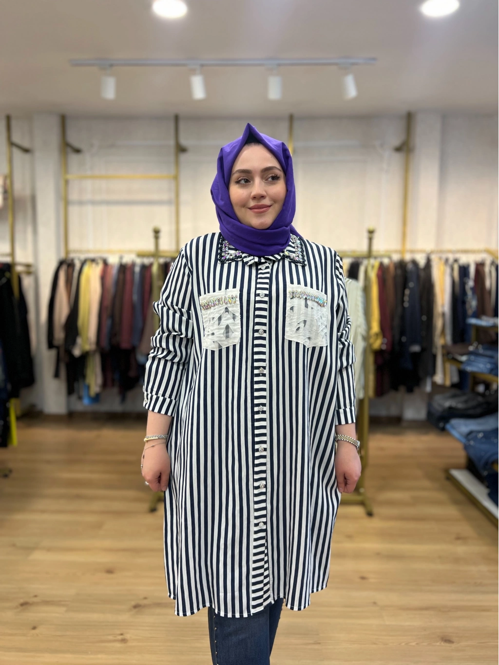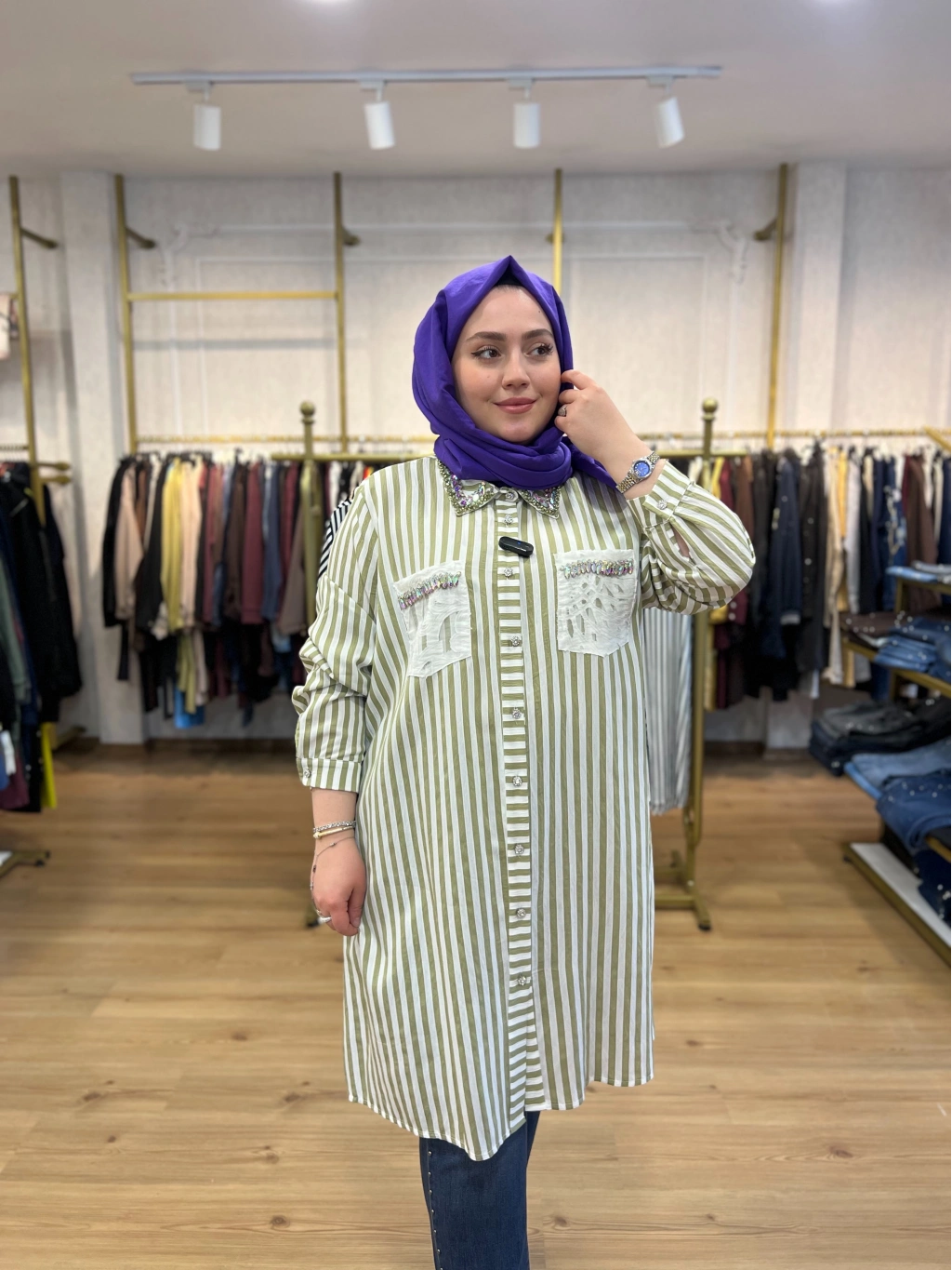 MEVA PLUS BY PUREVA Çizgili Taşlı Gömlek