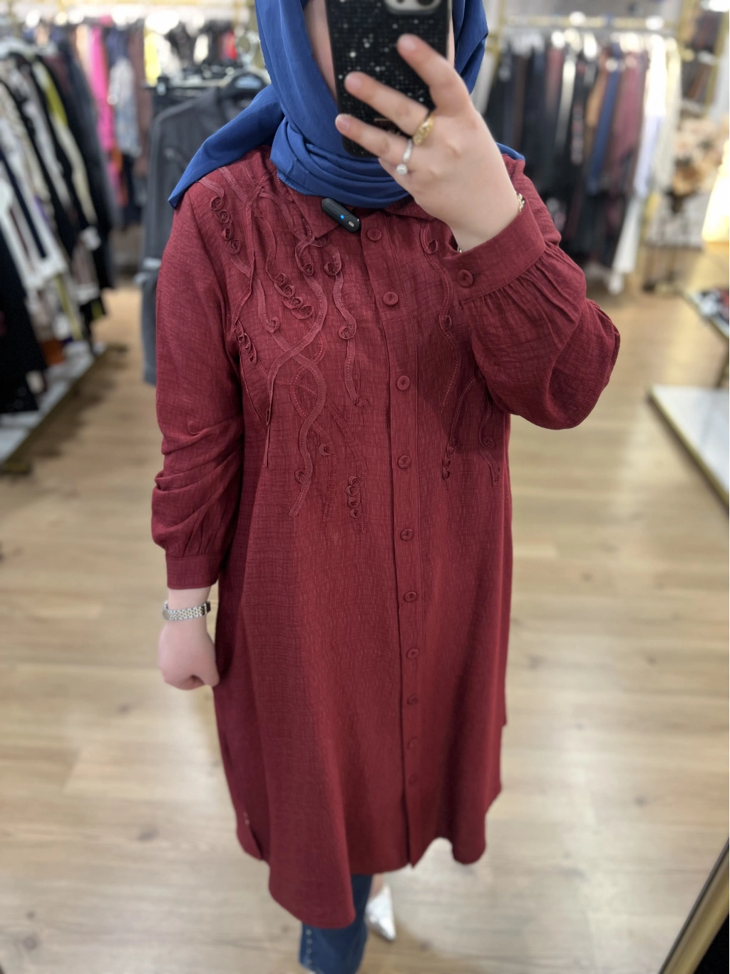 Meva By Pureva Püskürtme Taşlı ve İncili Pamuk Gömlek