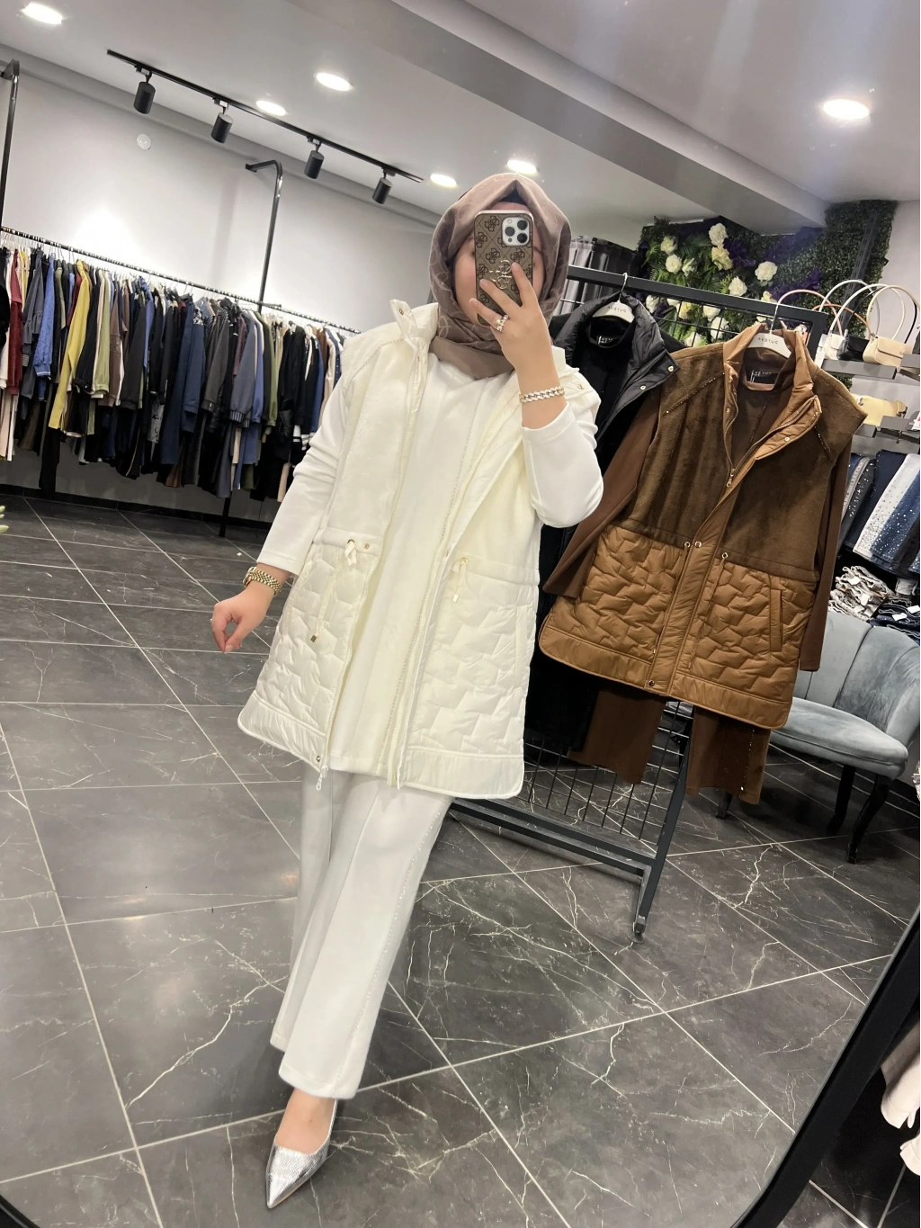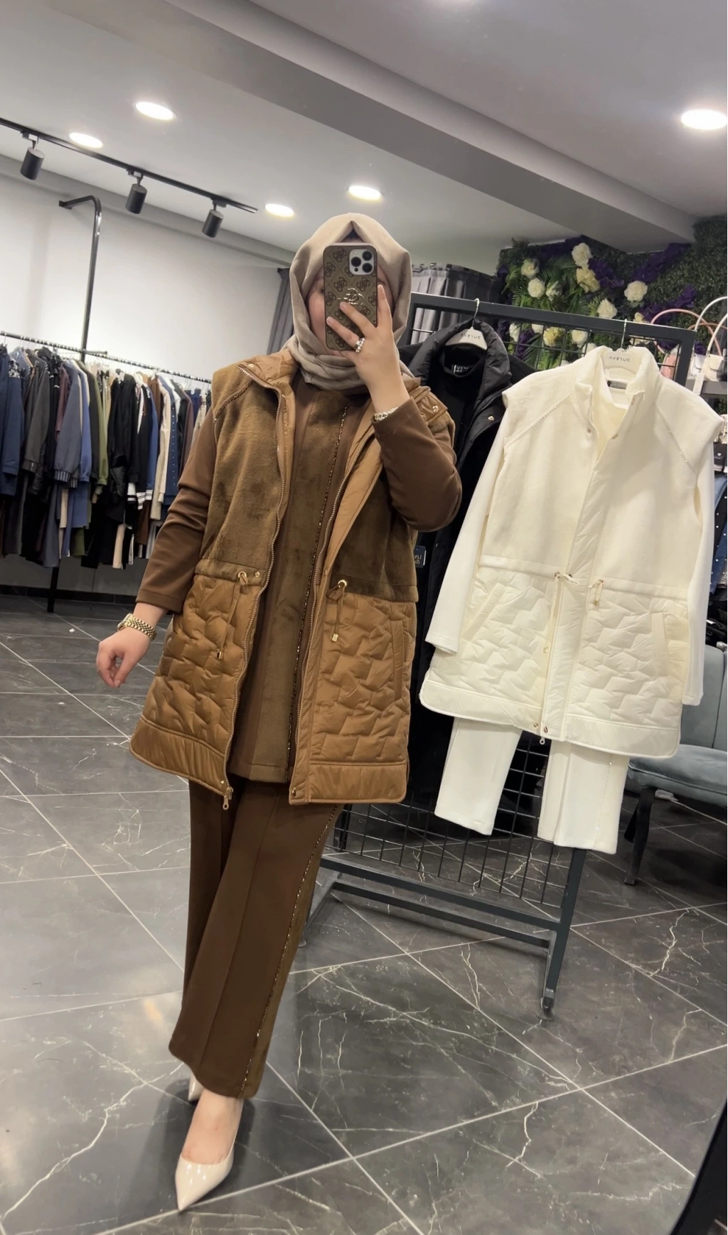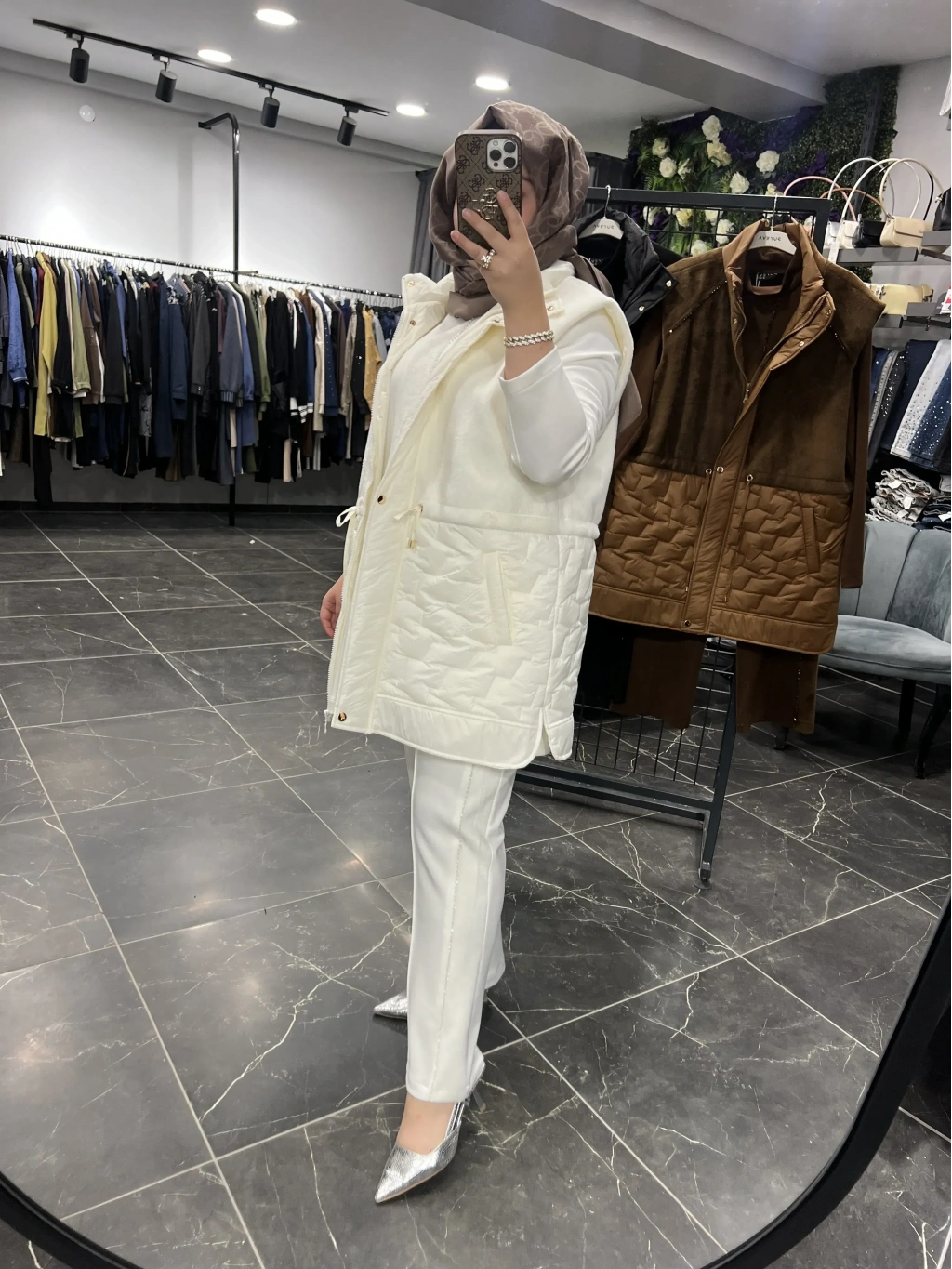 MEVA BY PUREVA Boncuk İşlemeli Yelekli Üçlü Takım