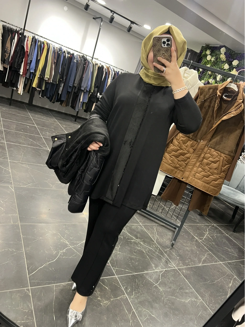 Yelek Boy:84cm / Tunik Boy: 82cm / Pantolon Boy:98cm , lastikli ve yüksek bele sahiptir.
