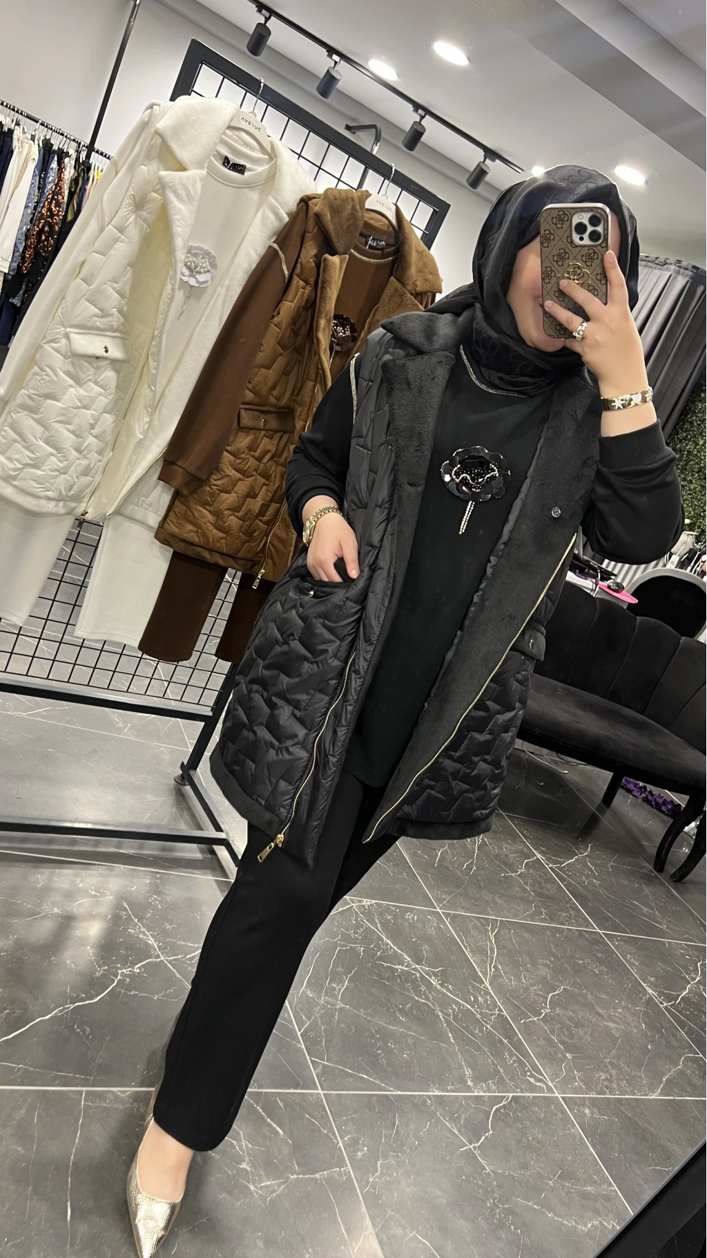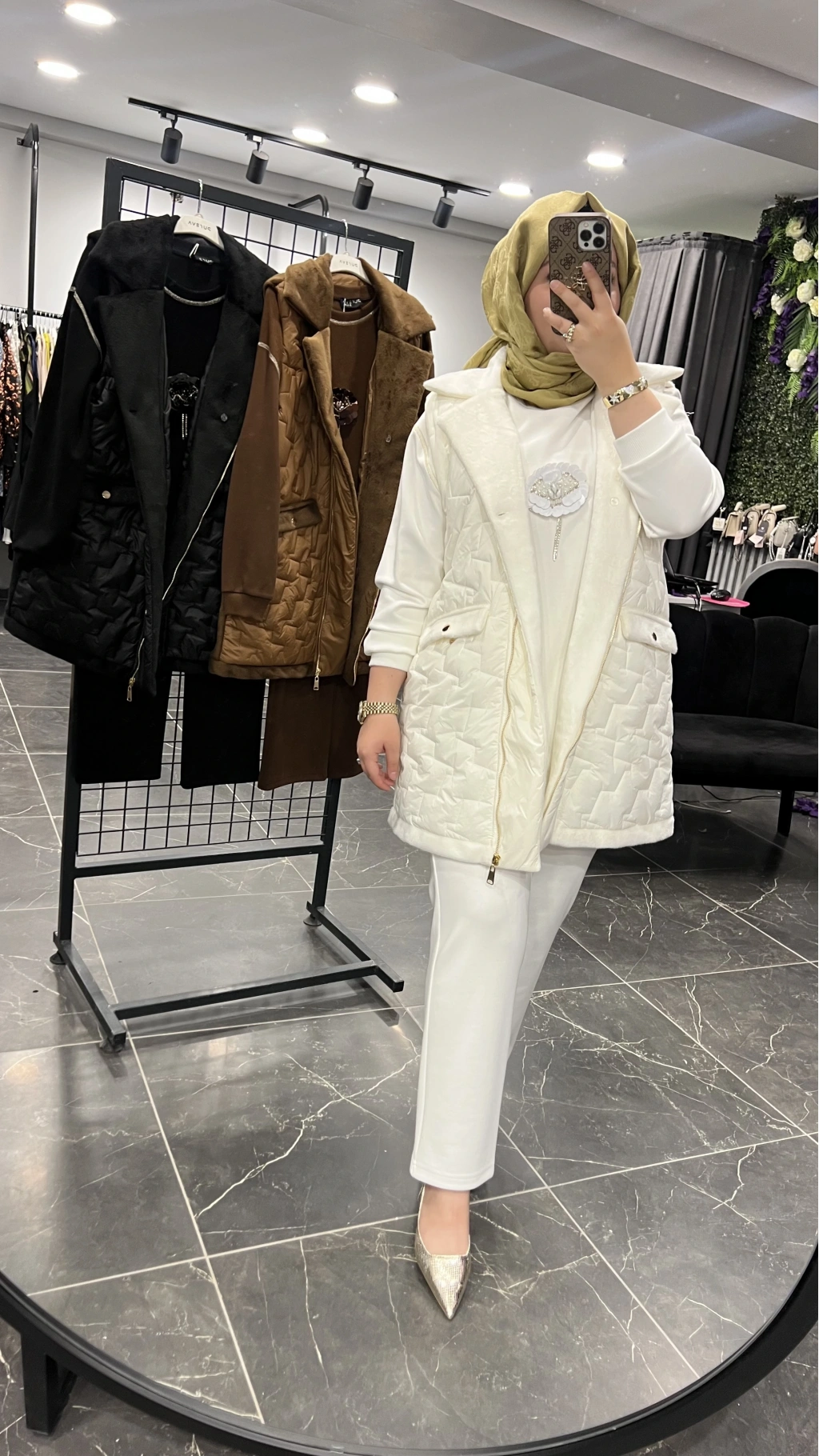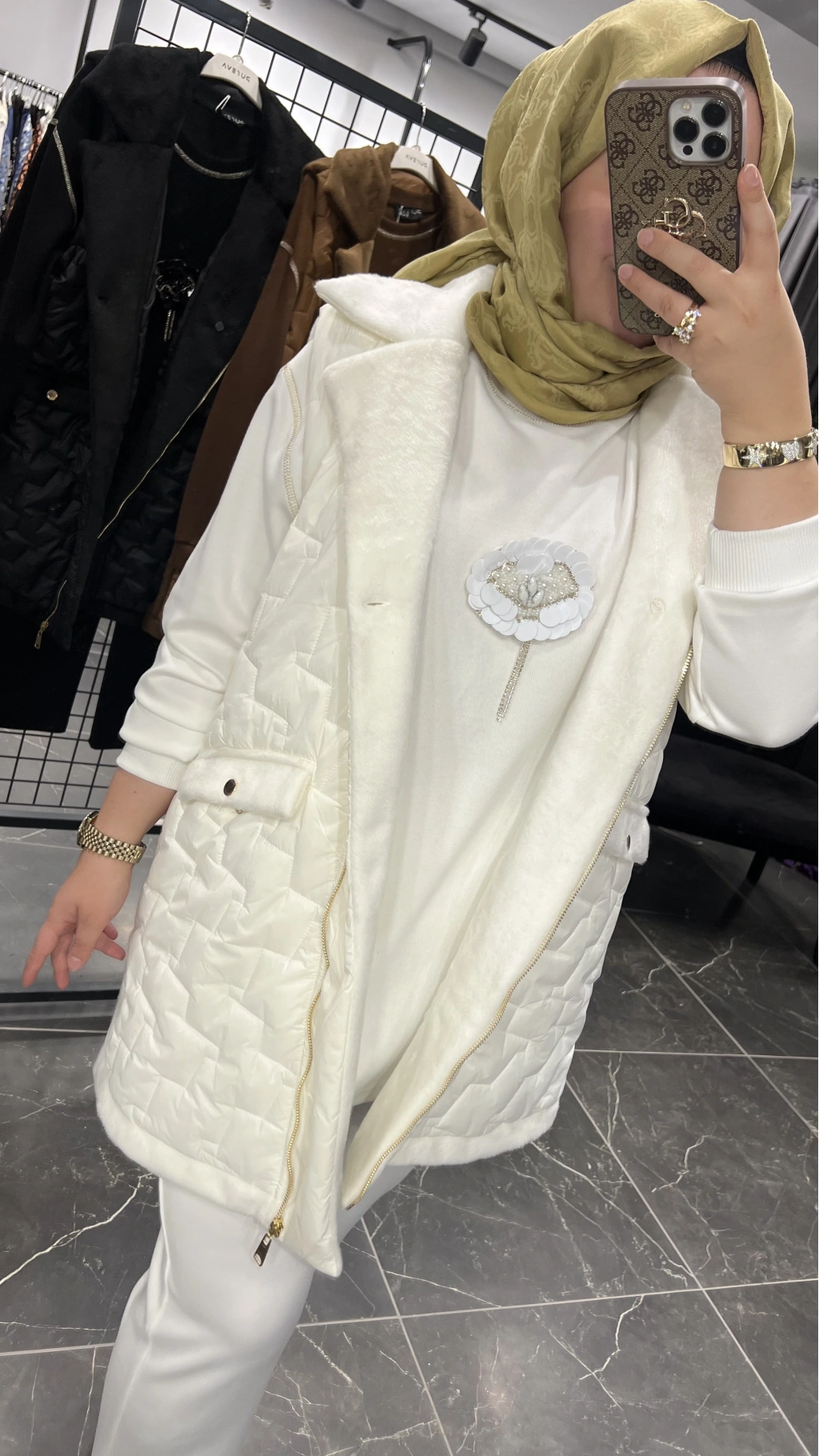 PUREVA Çiçek İşleme Yelekli Üçlü Takım