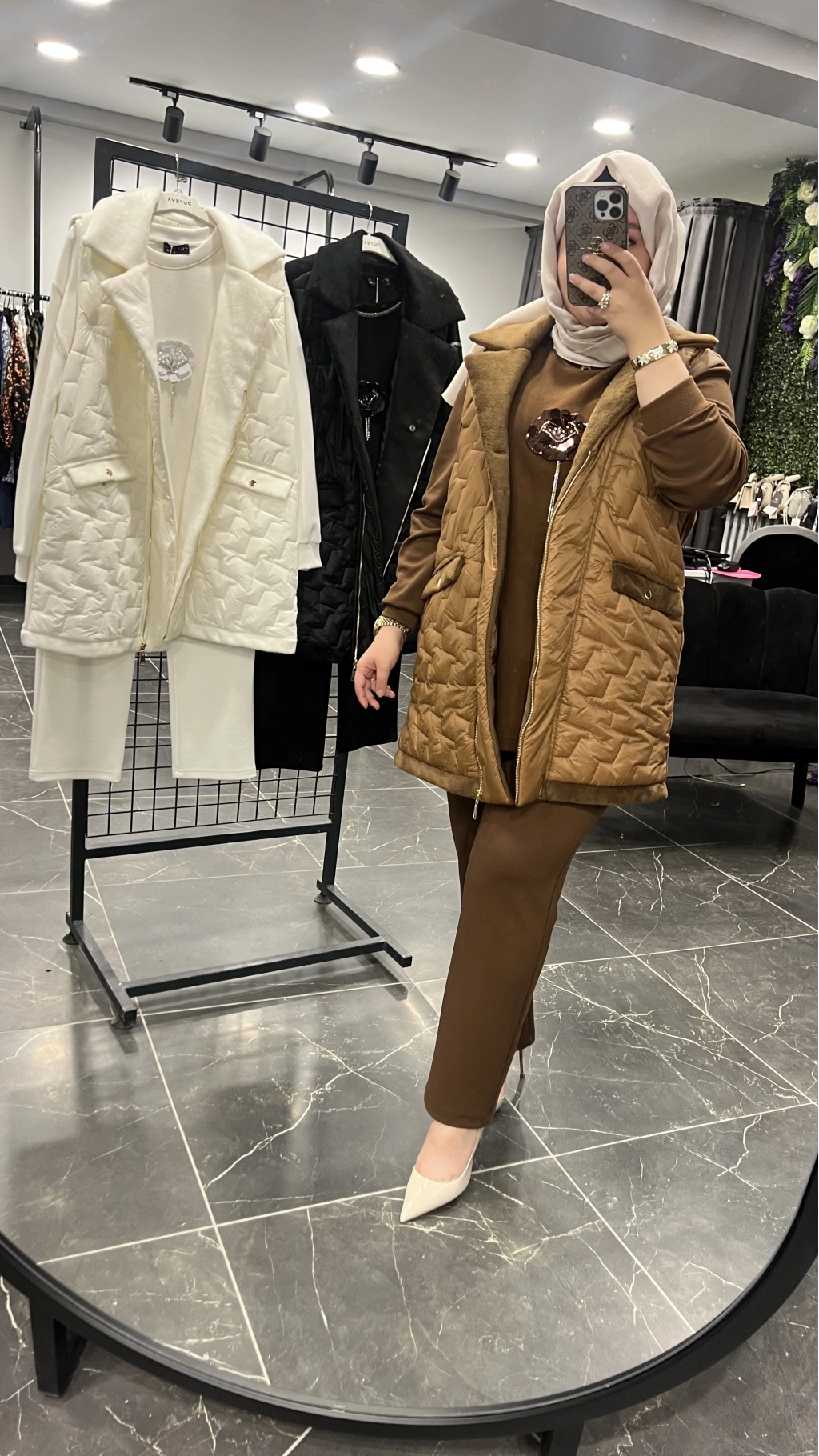MEVA BY PUREVA Boncuk İşlemeli Yelekli Üçlü Takım