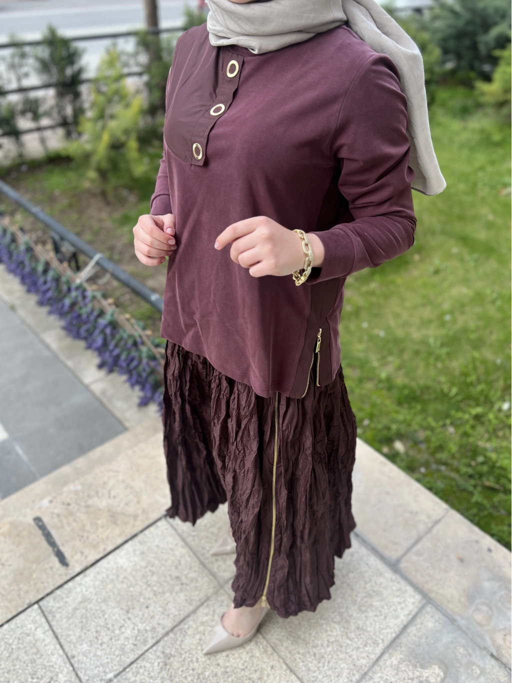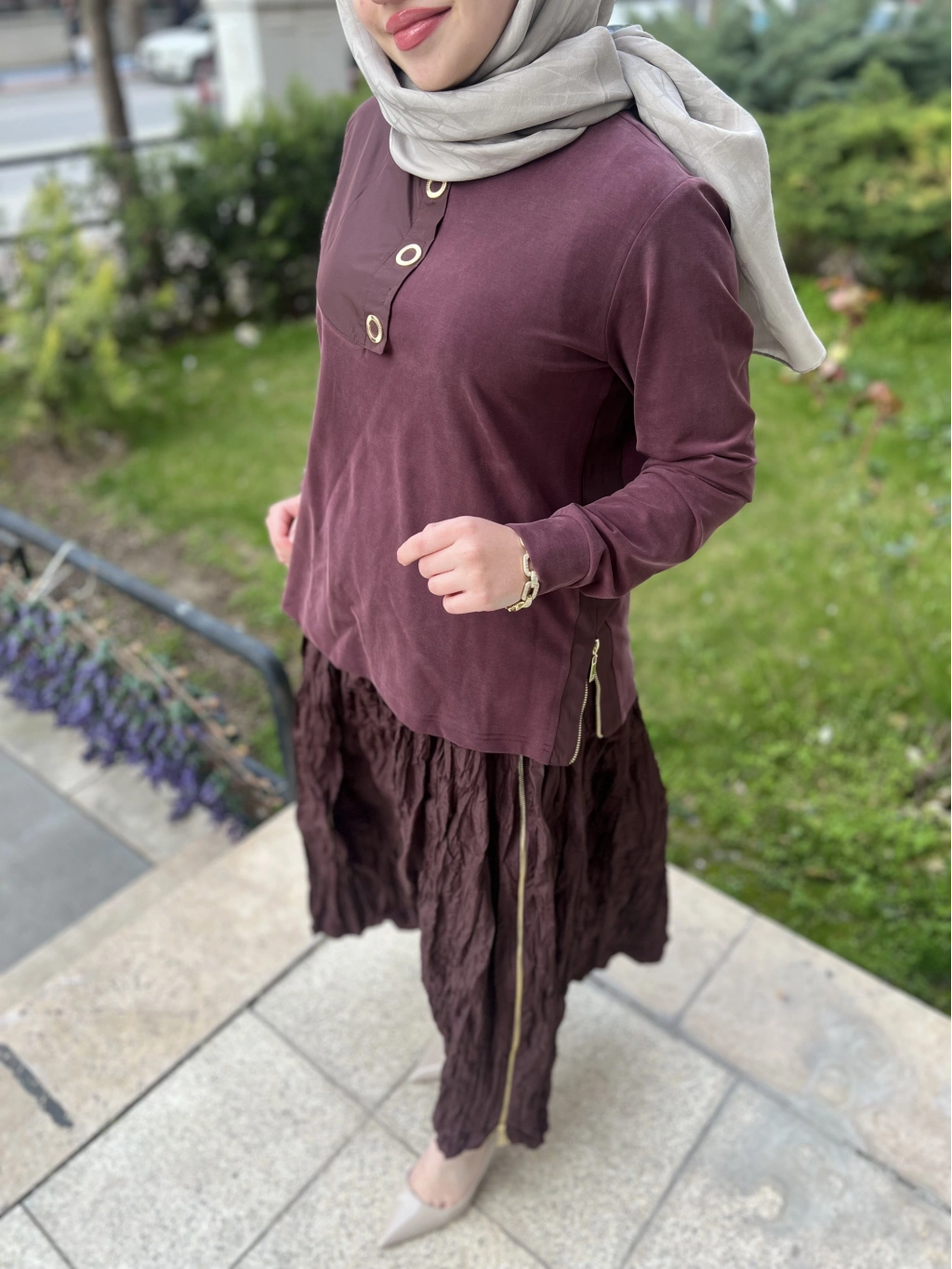 PUREVA Yaprak Nakışlı Tunik Takım