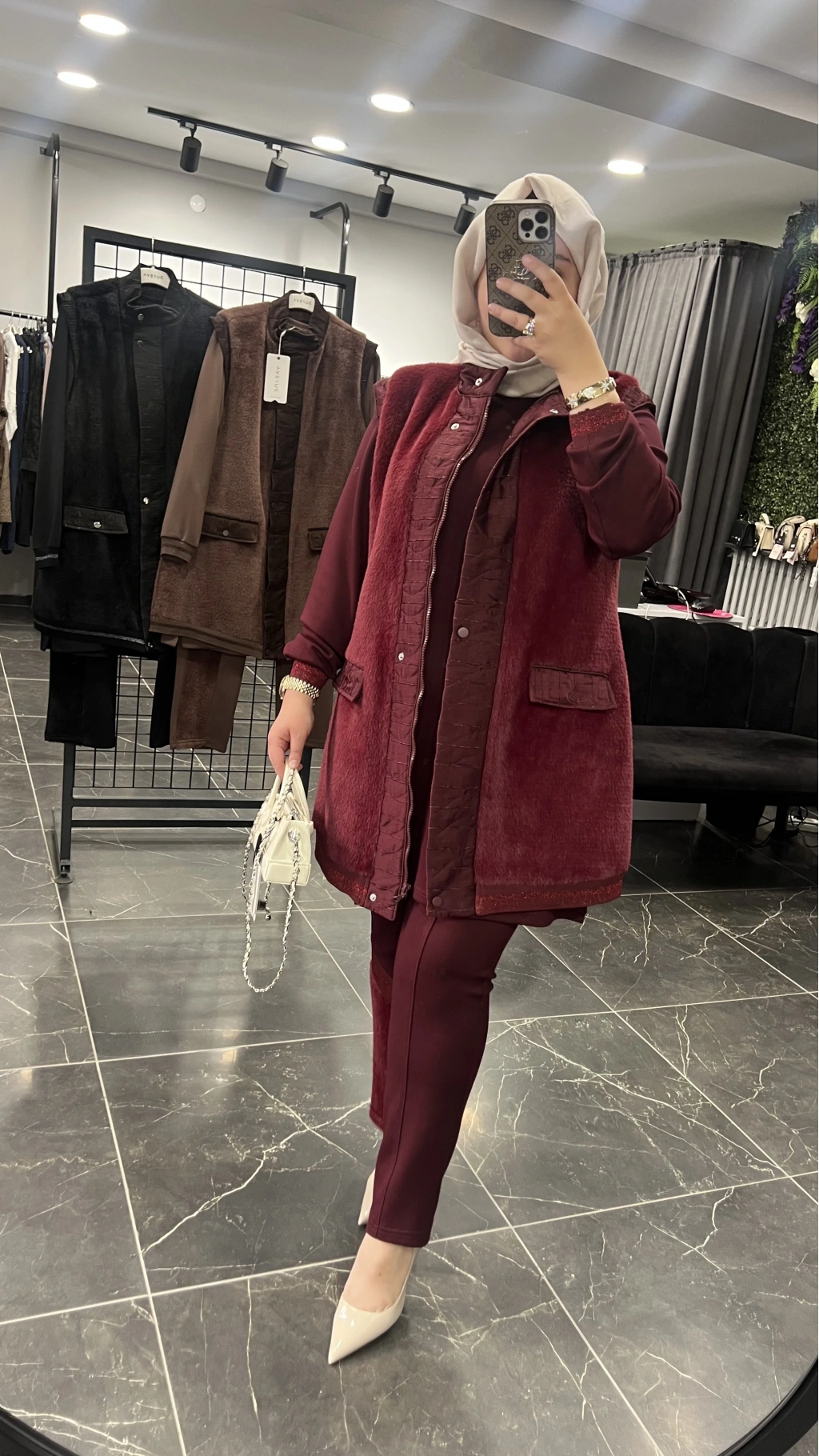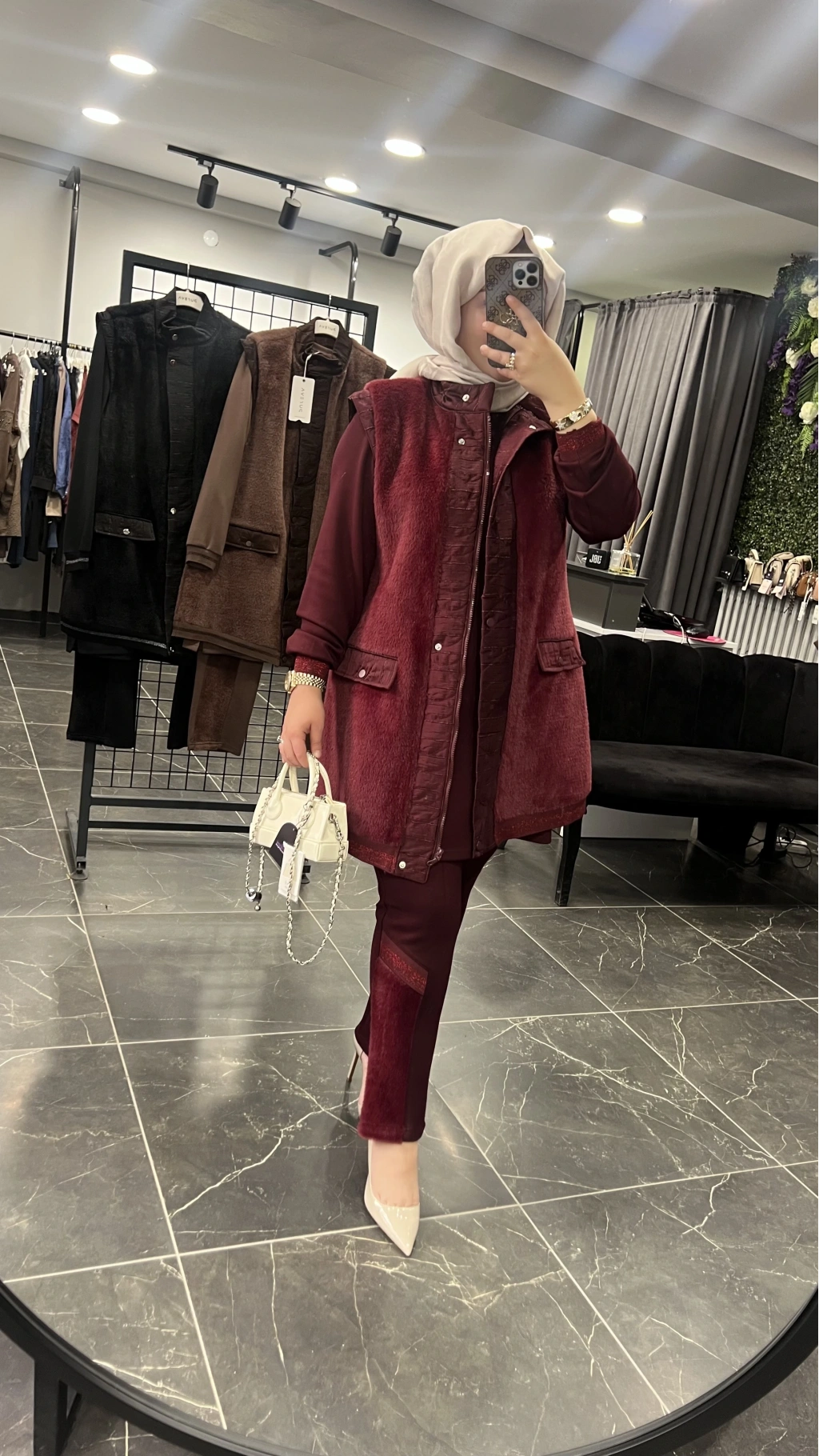 Pureva Boncuk İşlemeli Yelekli Takım