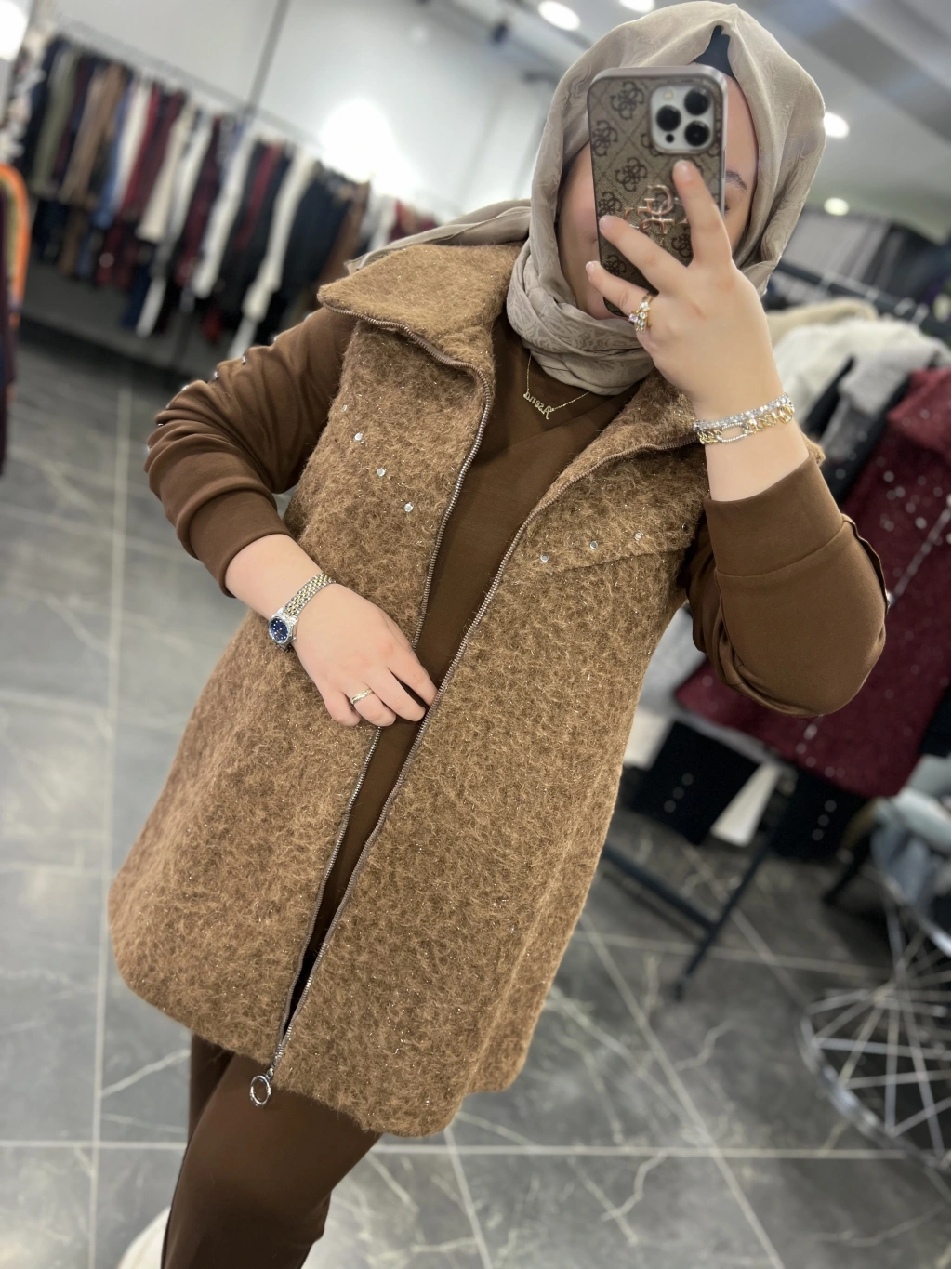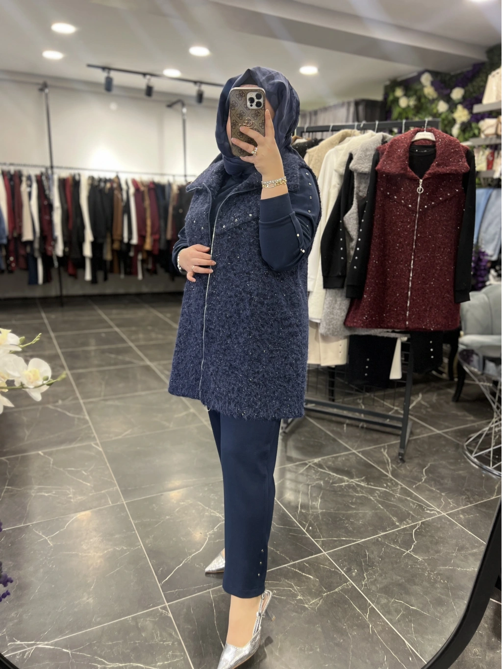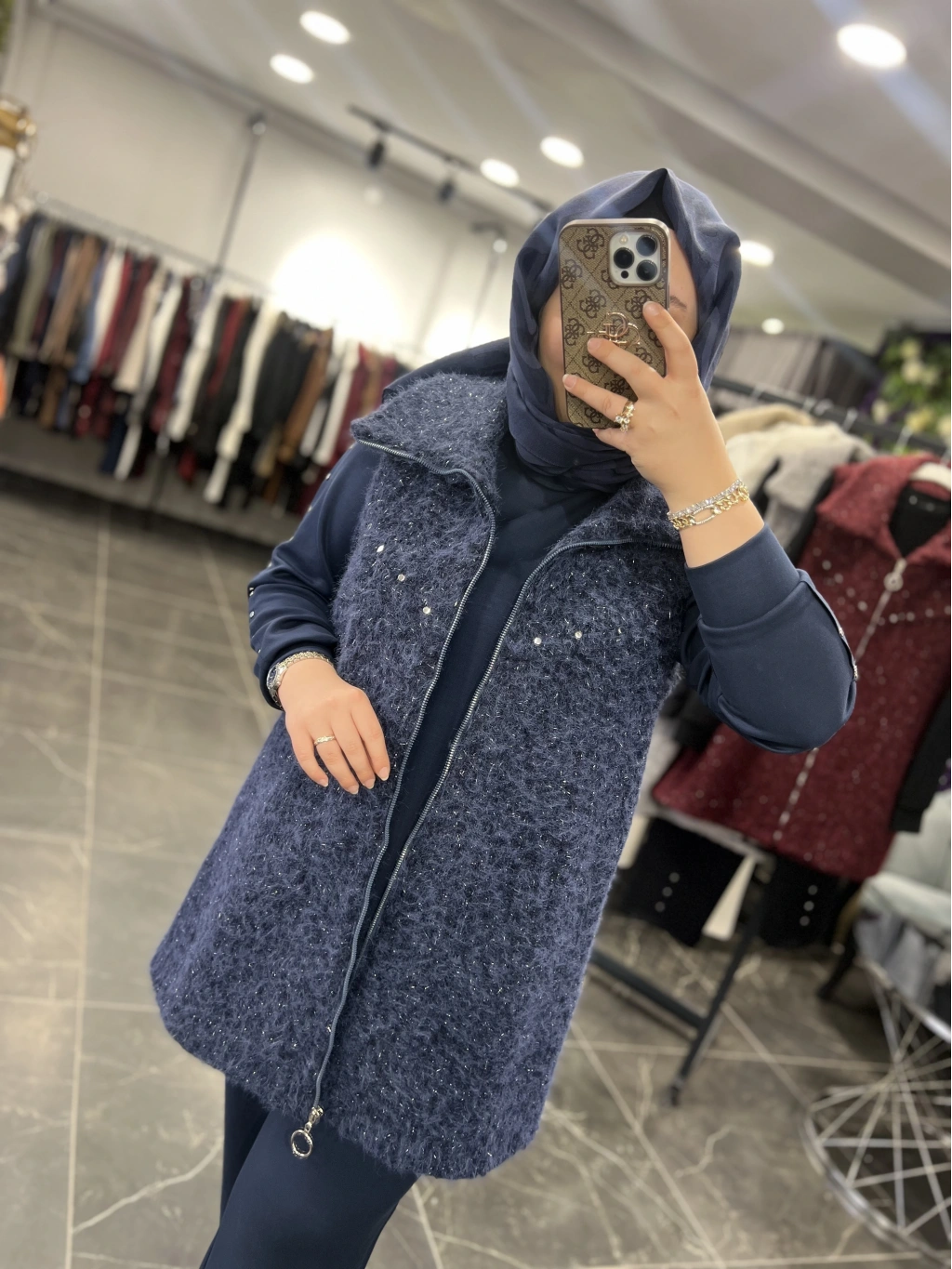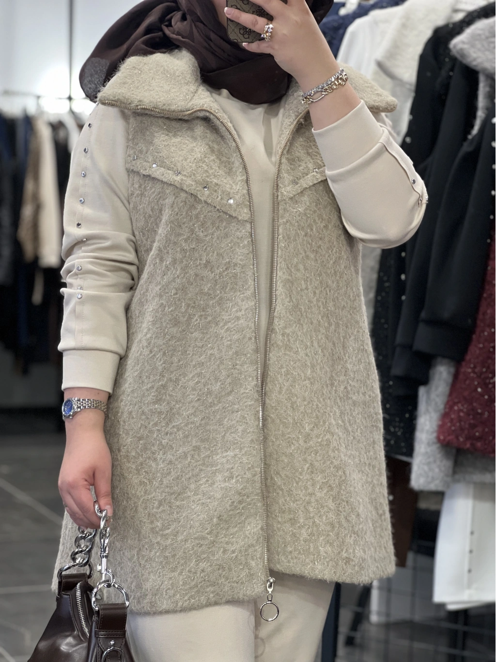 Yelek astarlıdır, ağır değildir, simli yün kumaştır.