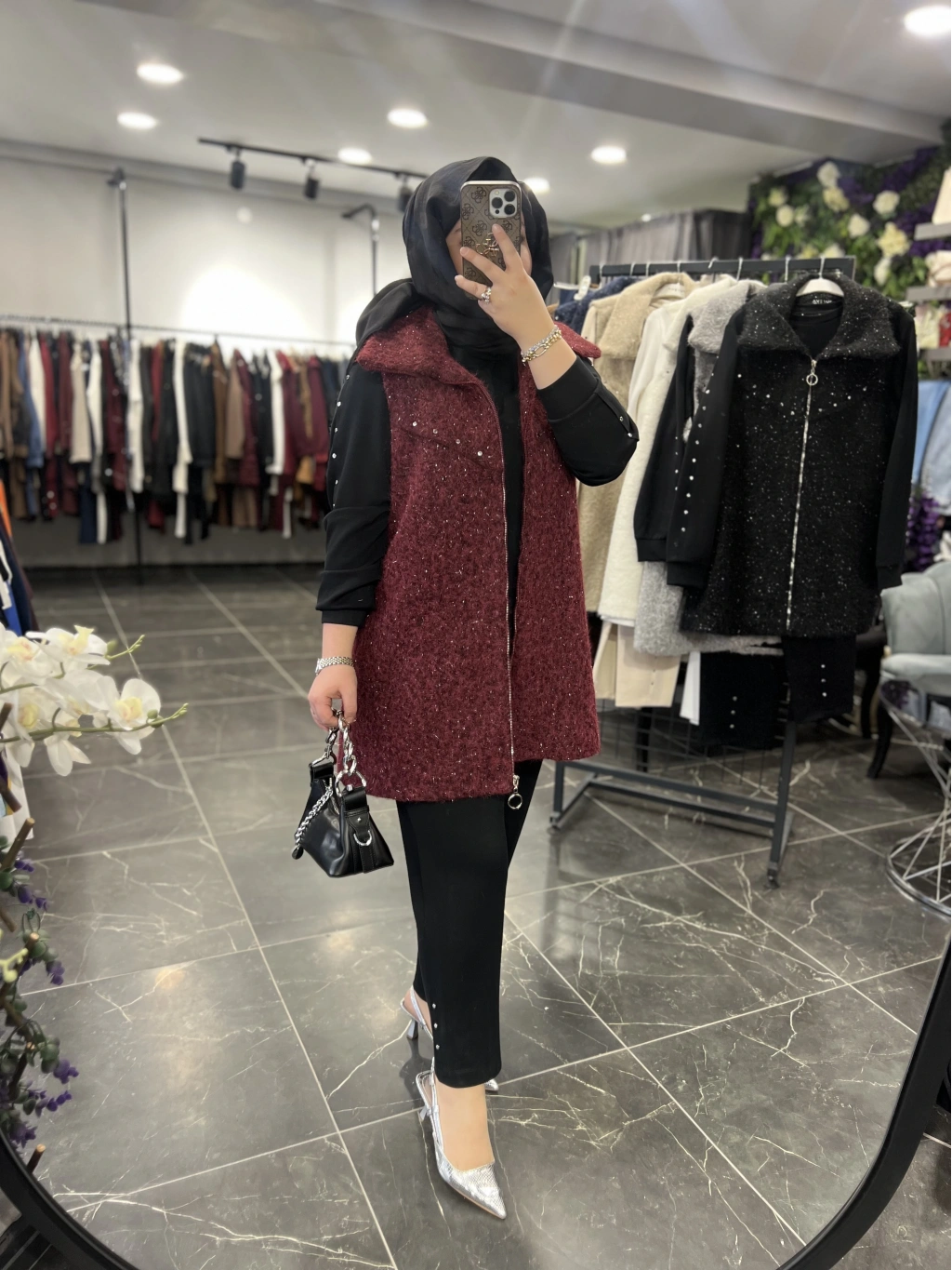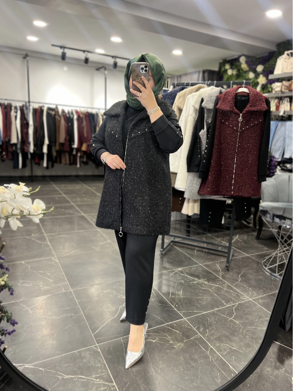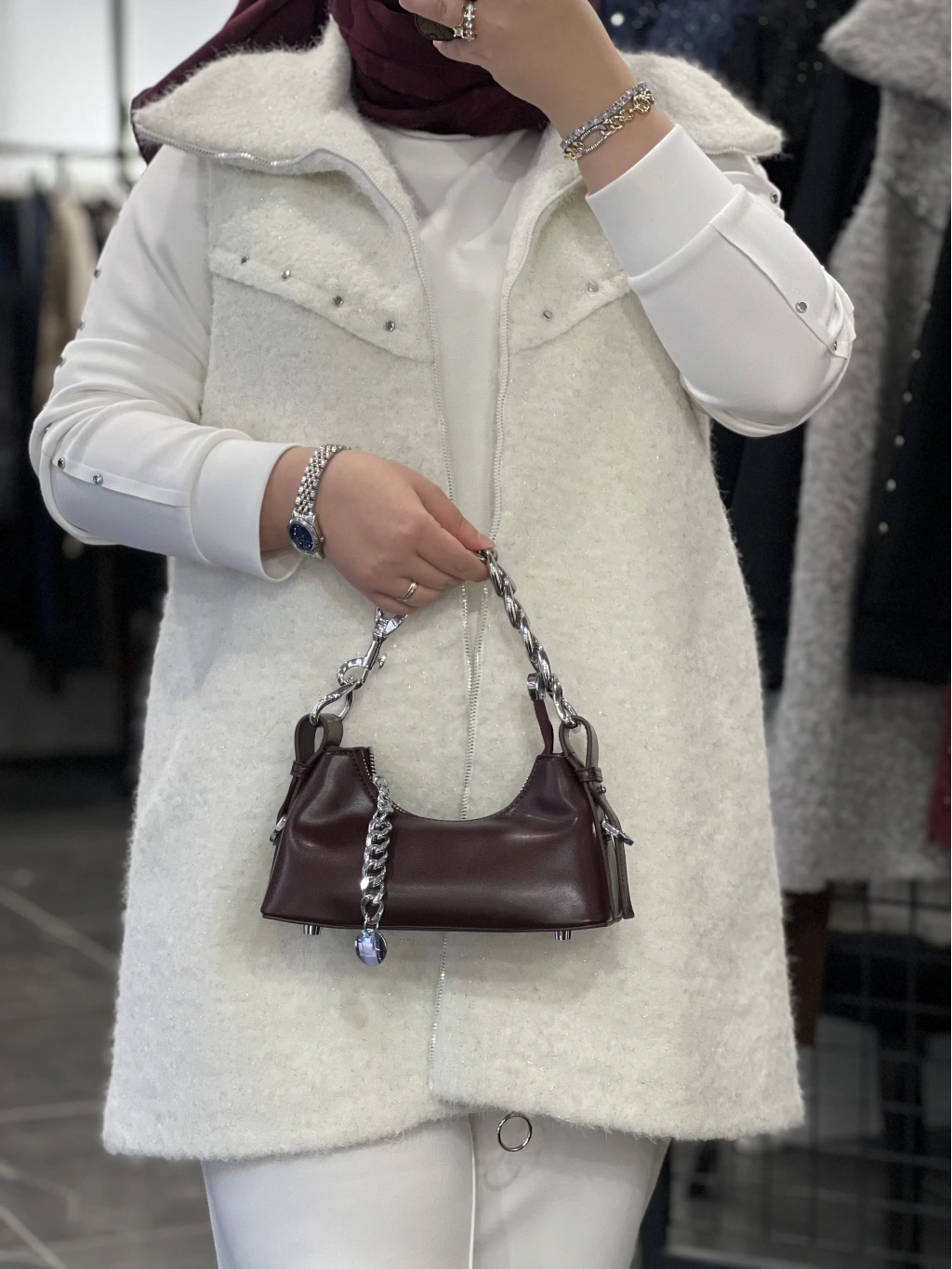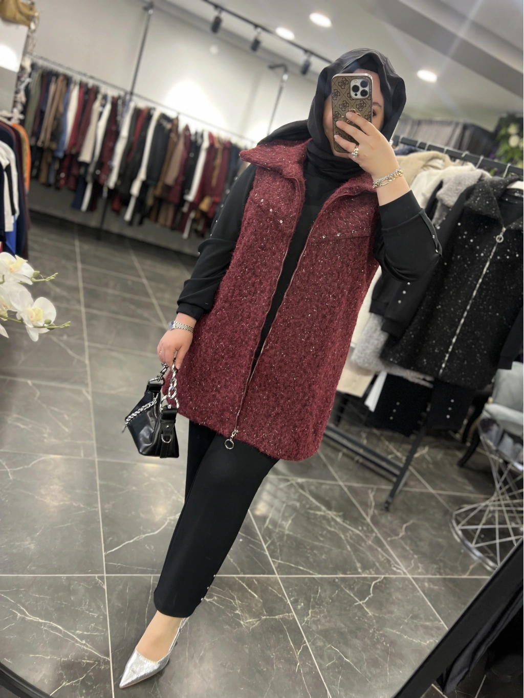 Yelek astarlıdır, ağır değildir, simli yün kumaştır.