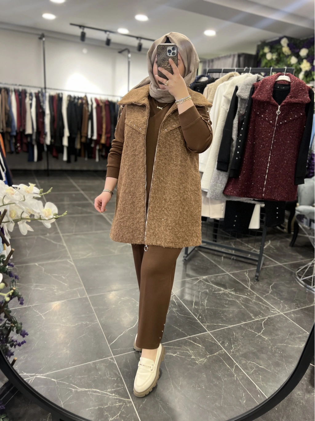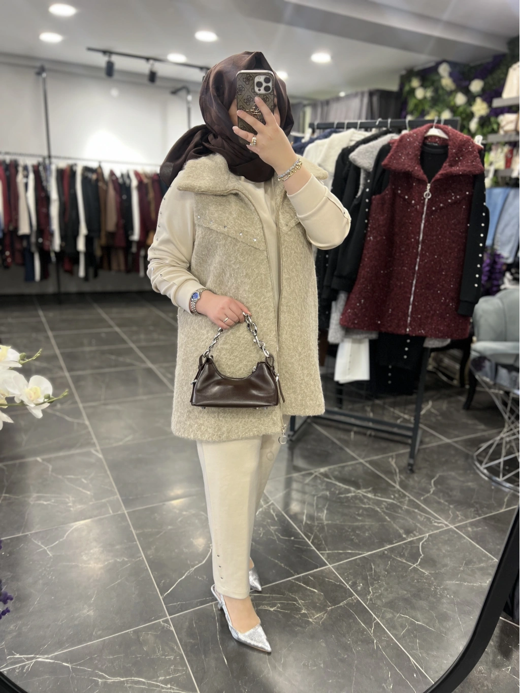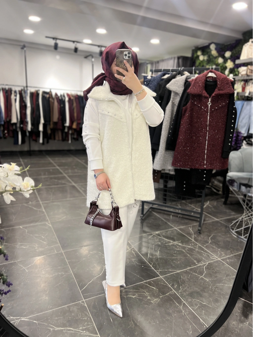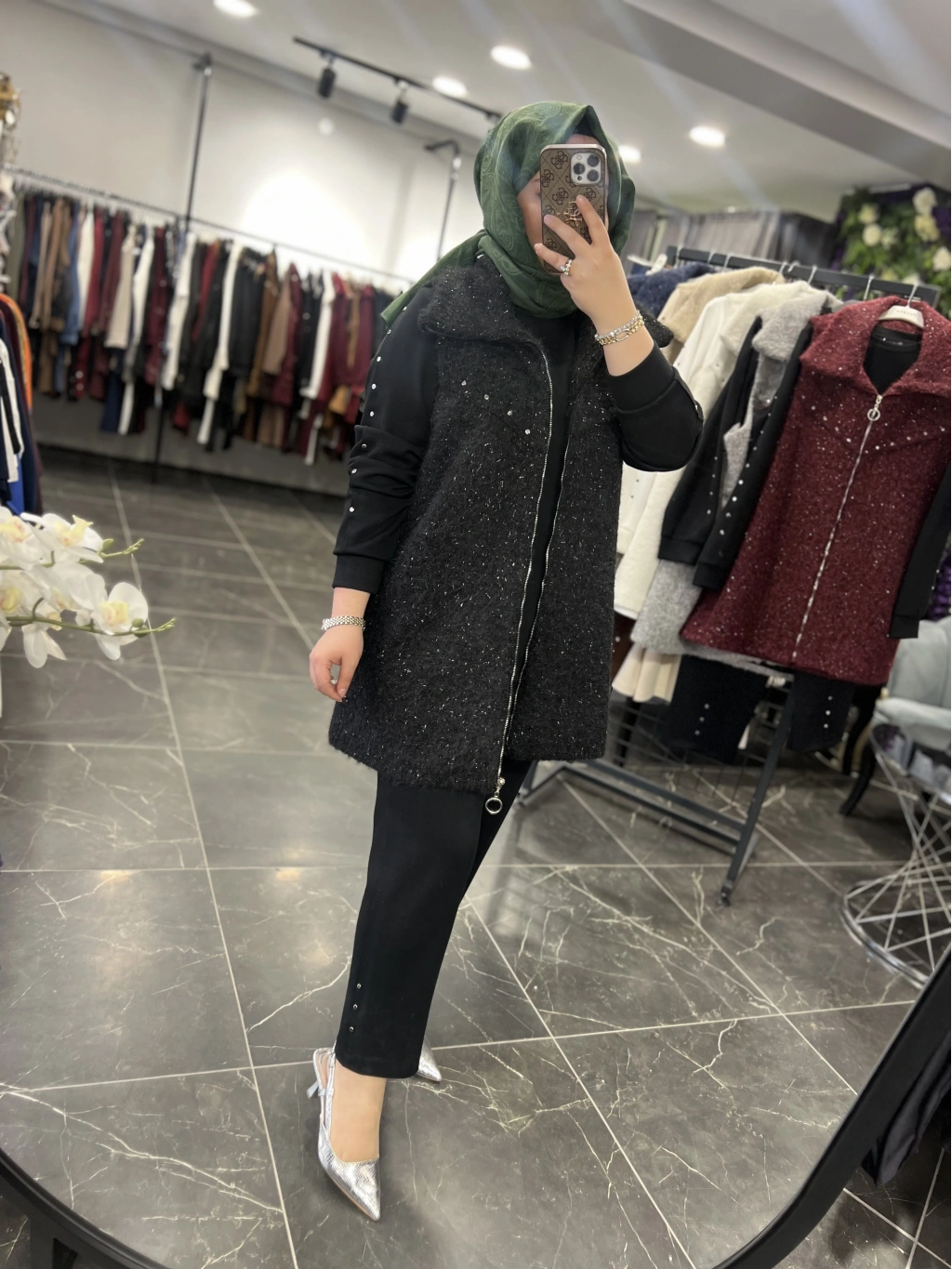 Yelek astarlıdır, ağır değildir, simli yün kumaştır.
