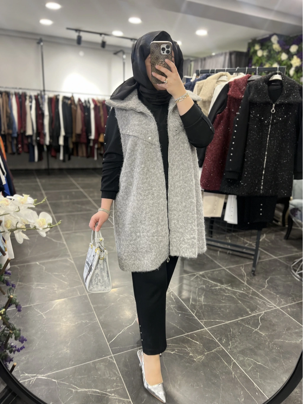 Yelek astarlıdır, ağır değildir, simli yün kumaştır.
