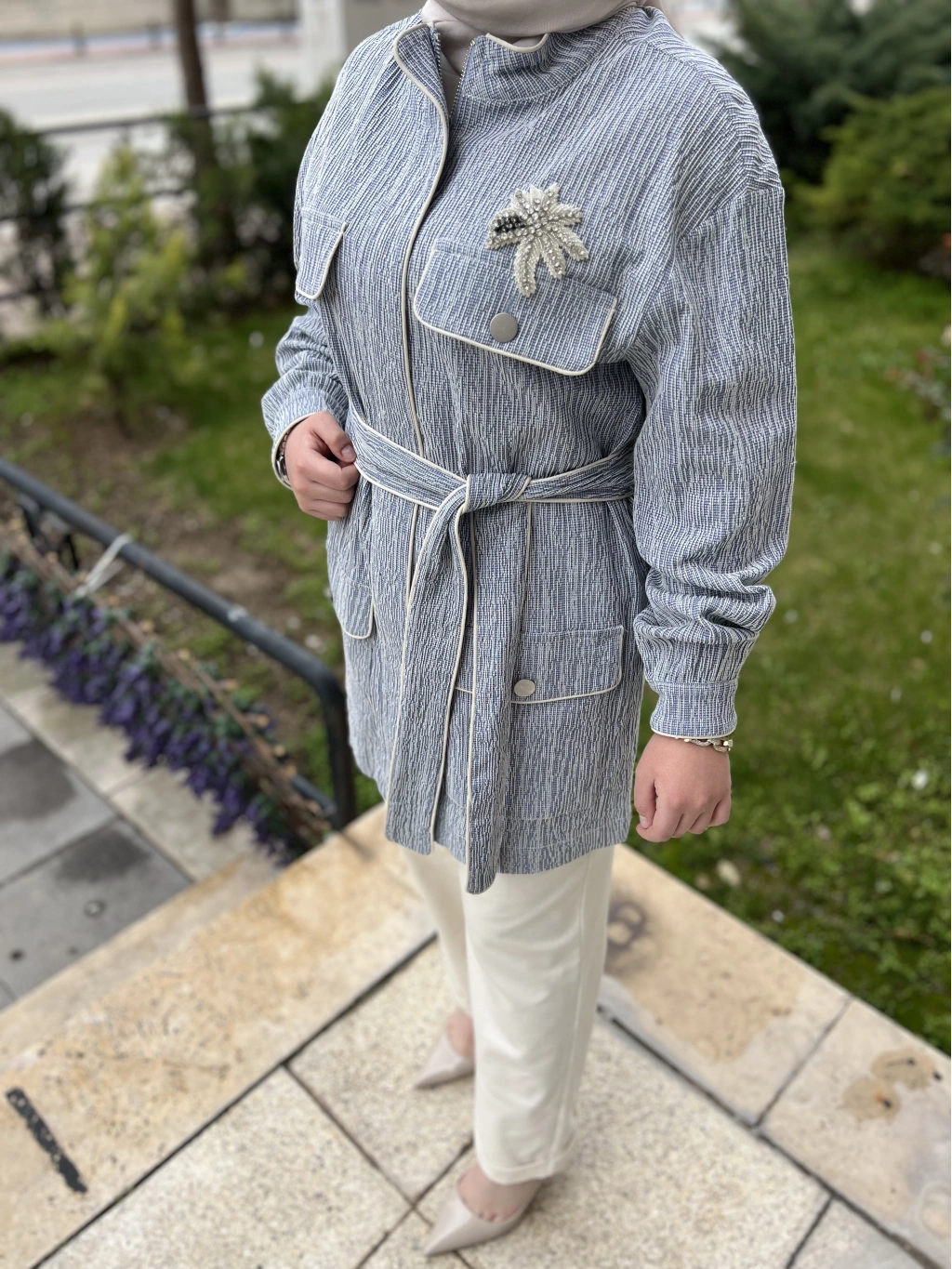 MEVA PLUS BY PUREVA Çizgili Keten Tensel Giyçık