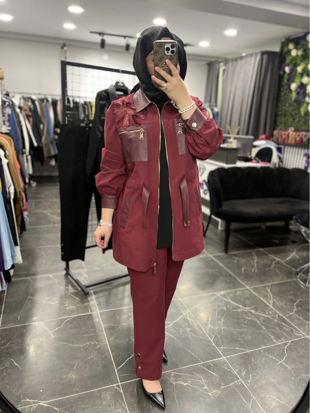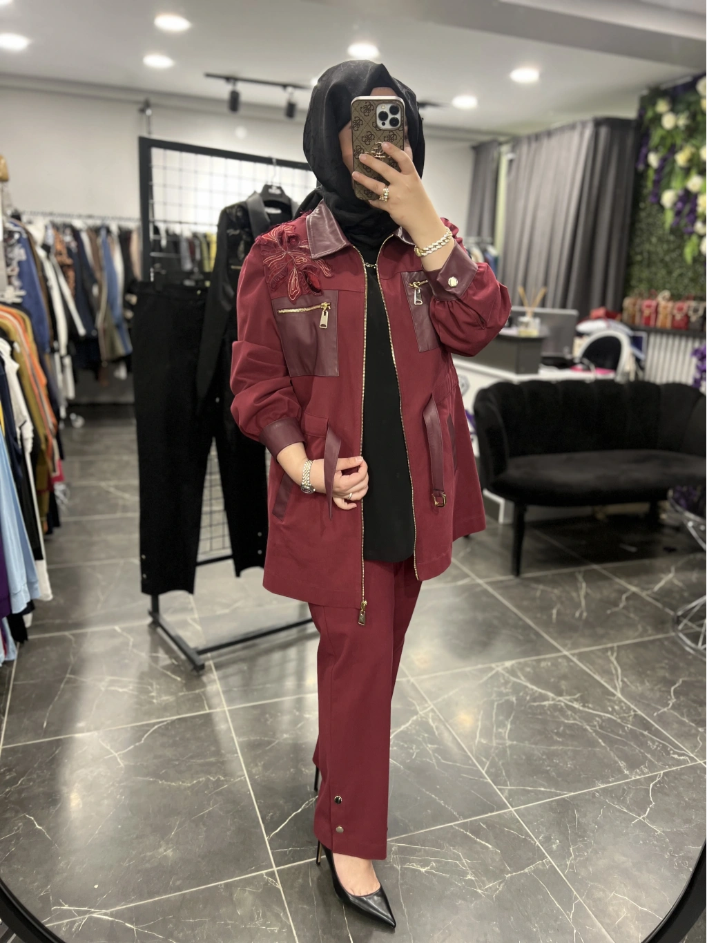 PUREVA Çiçek İşleme Yelekli Üçlü Takım