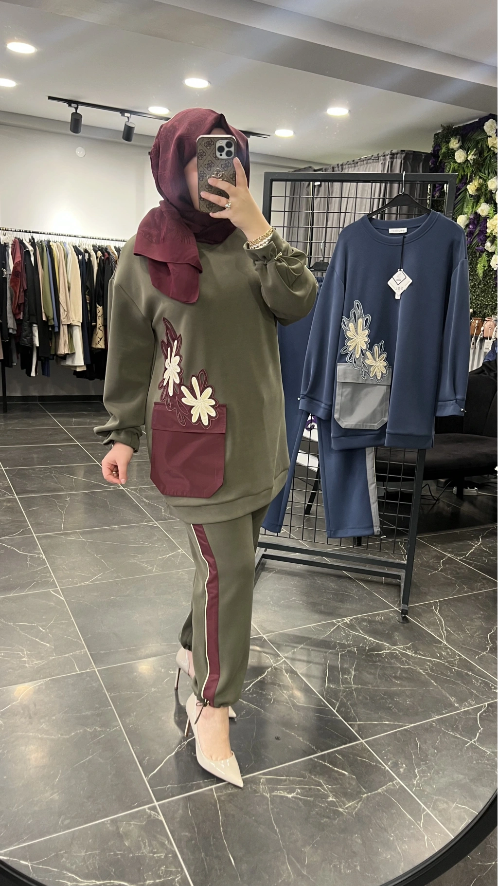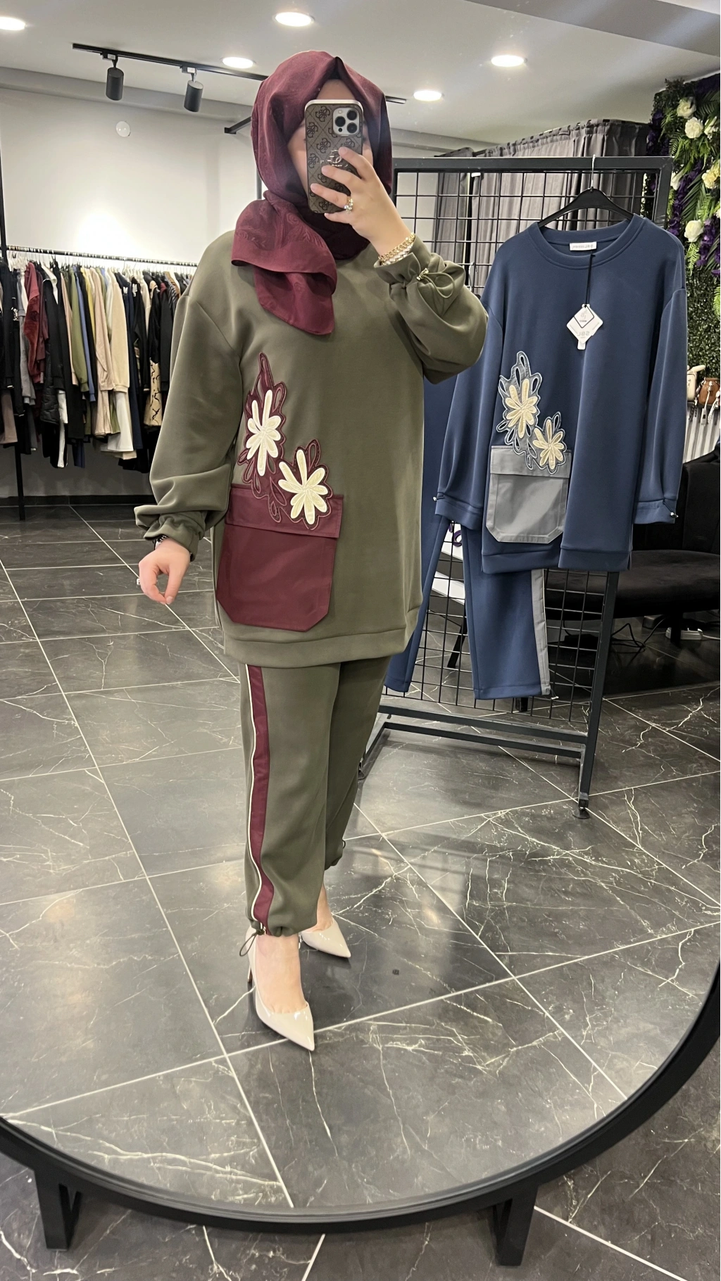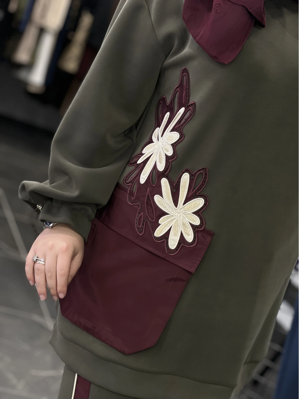 PUREVA Çiçek İşleme Yelekli Üçlü Takım