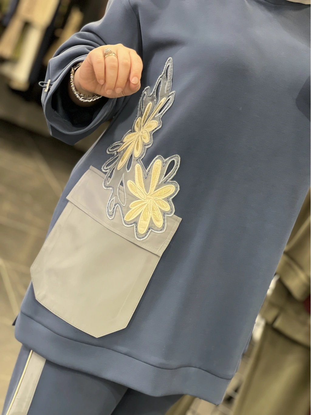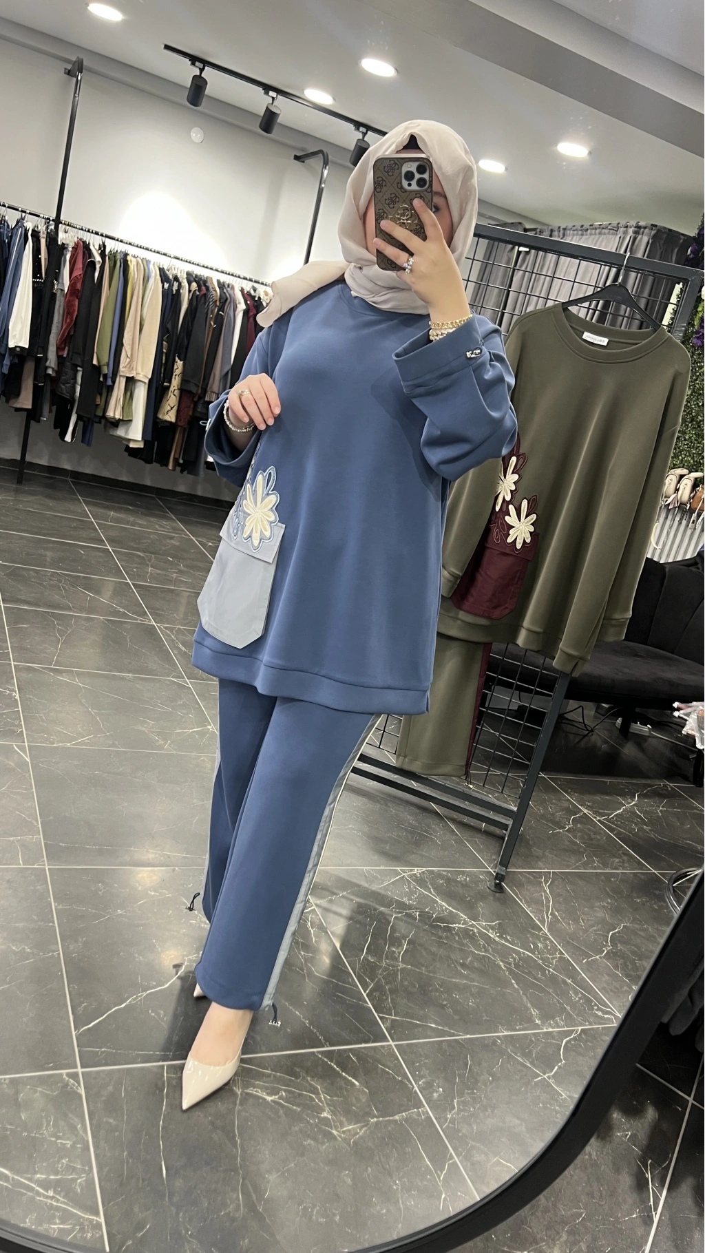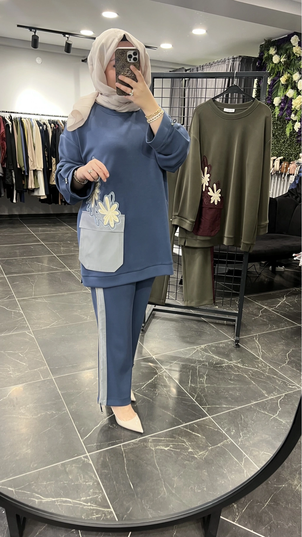 PUREVA Çiçek İşleme Yelekli Üçlü Takım