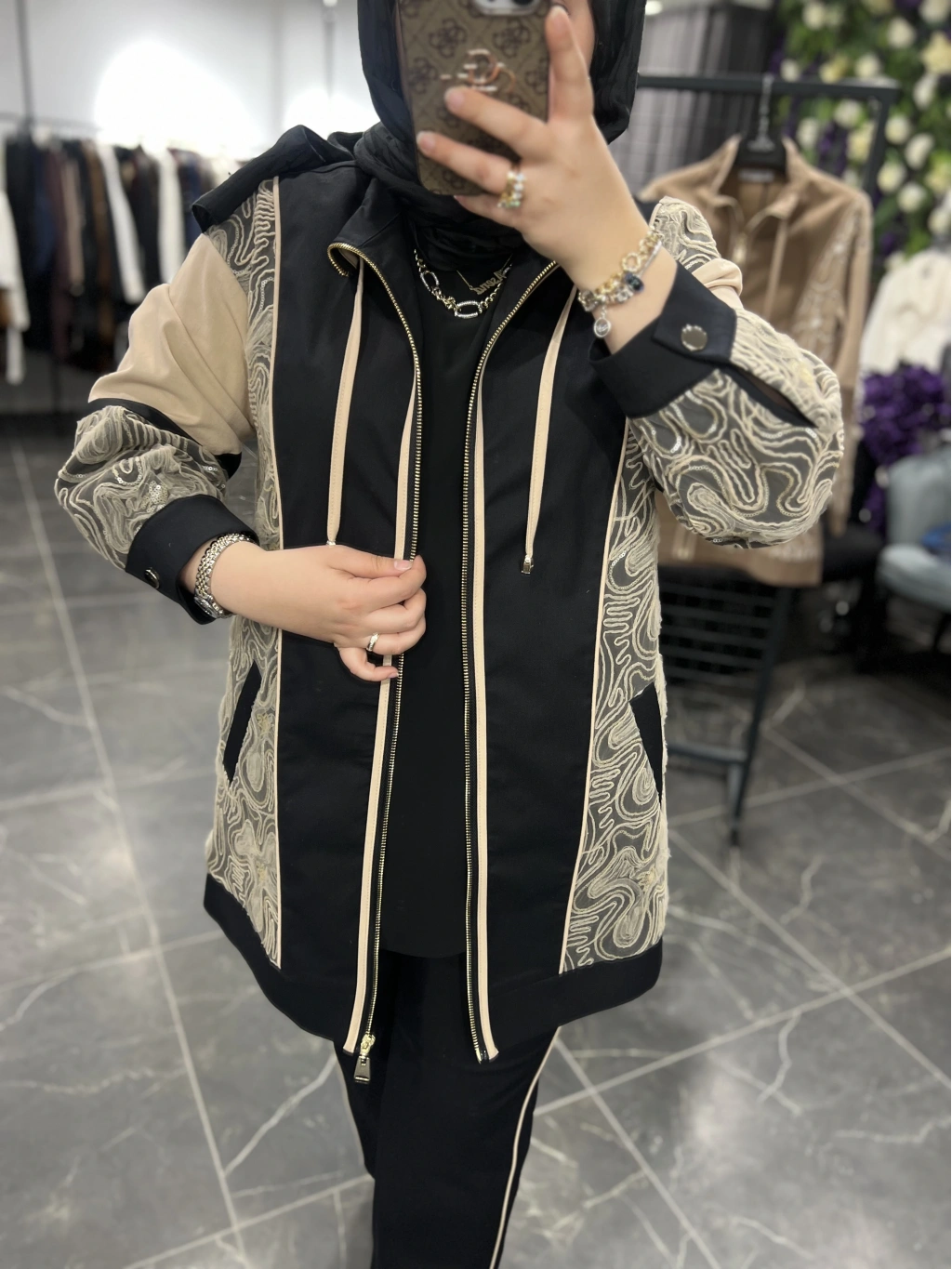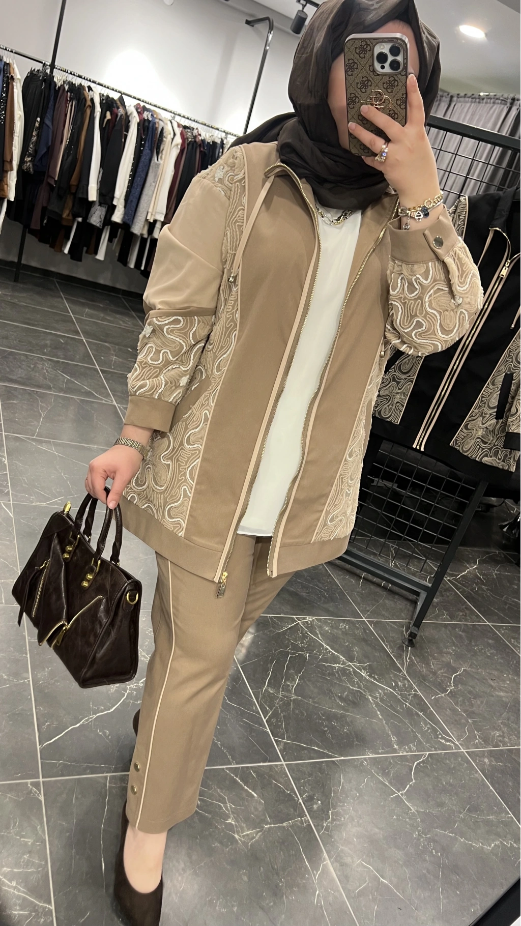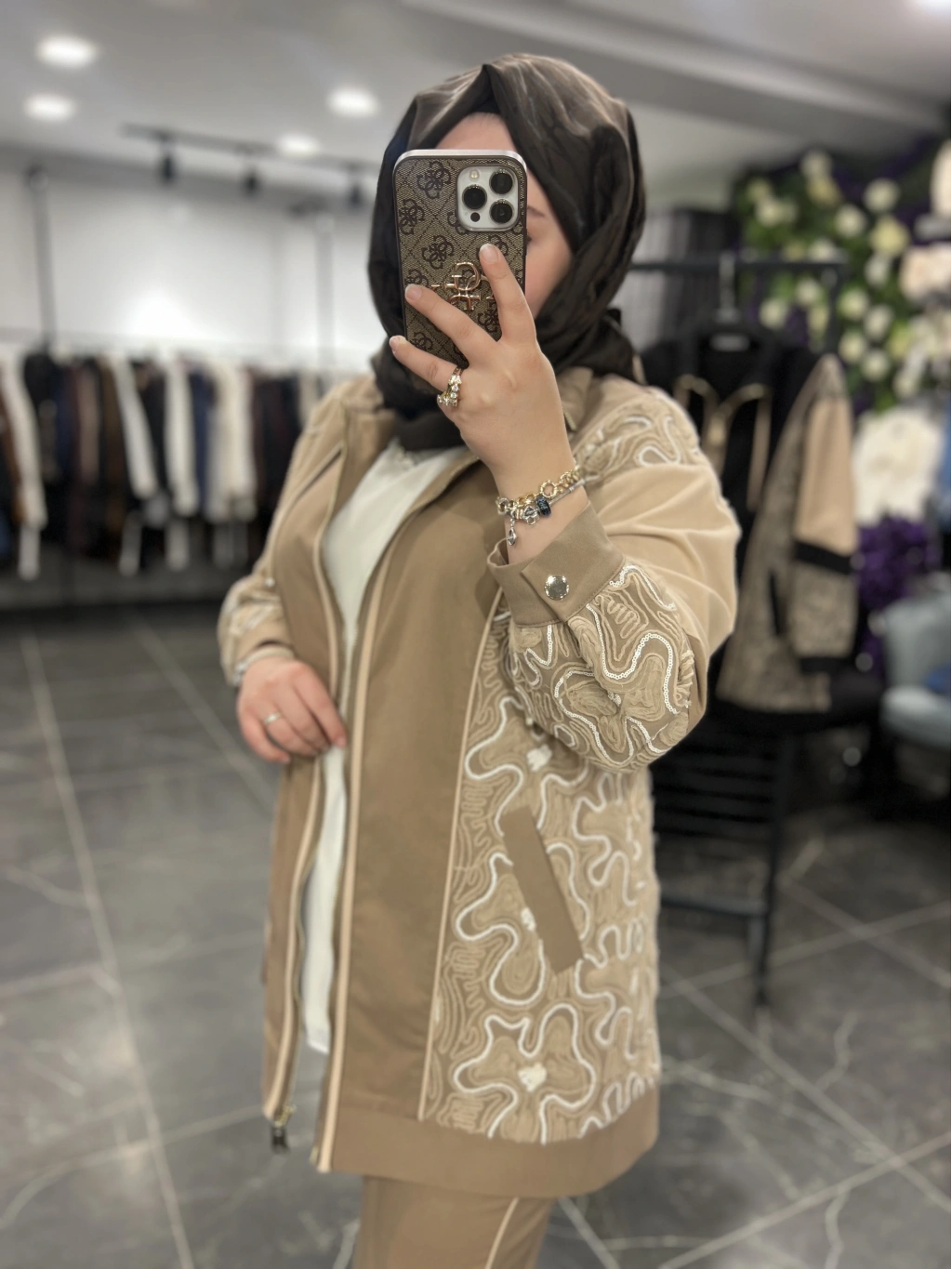 Pureva Boncuk İşlemeli Şardon Ceketli Takım