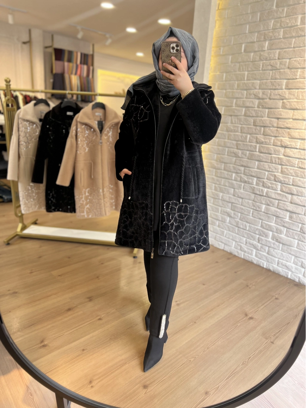 SOLİS Yaprak Taşlı Angora Kapitone Kaban