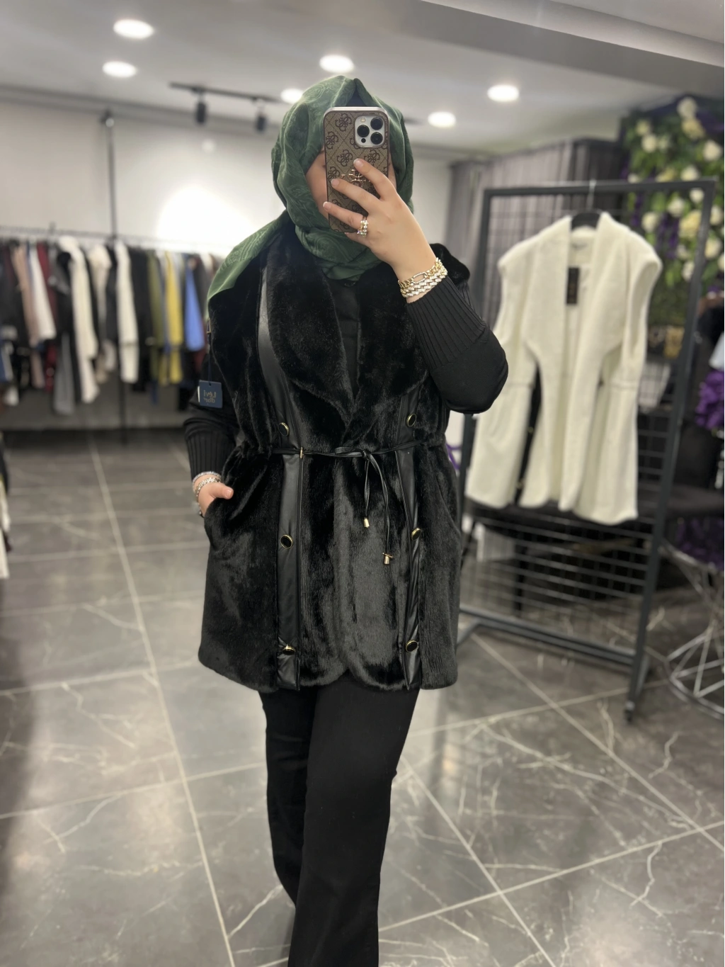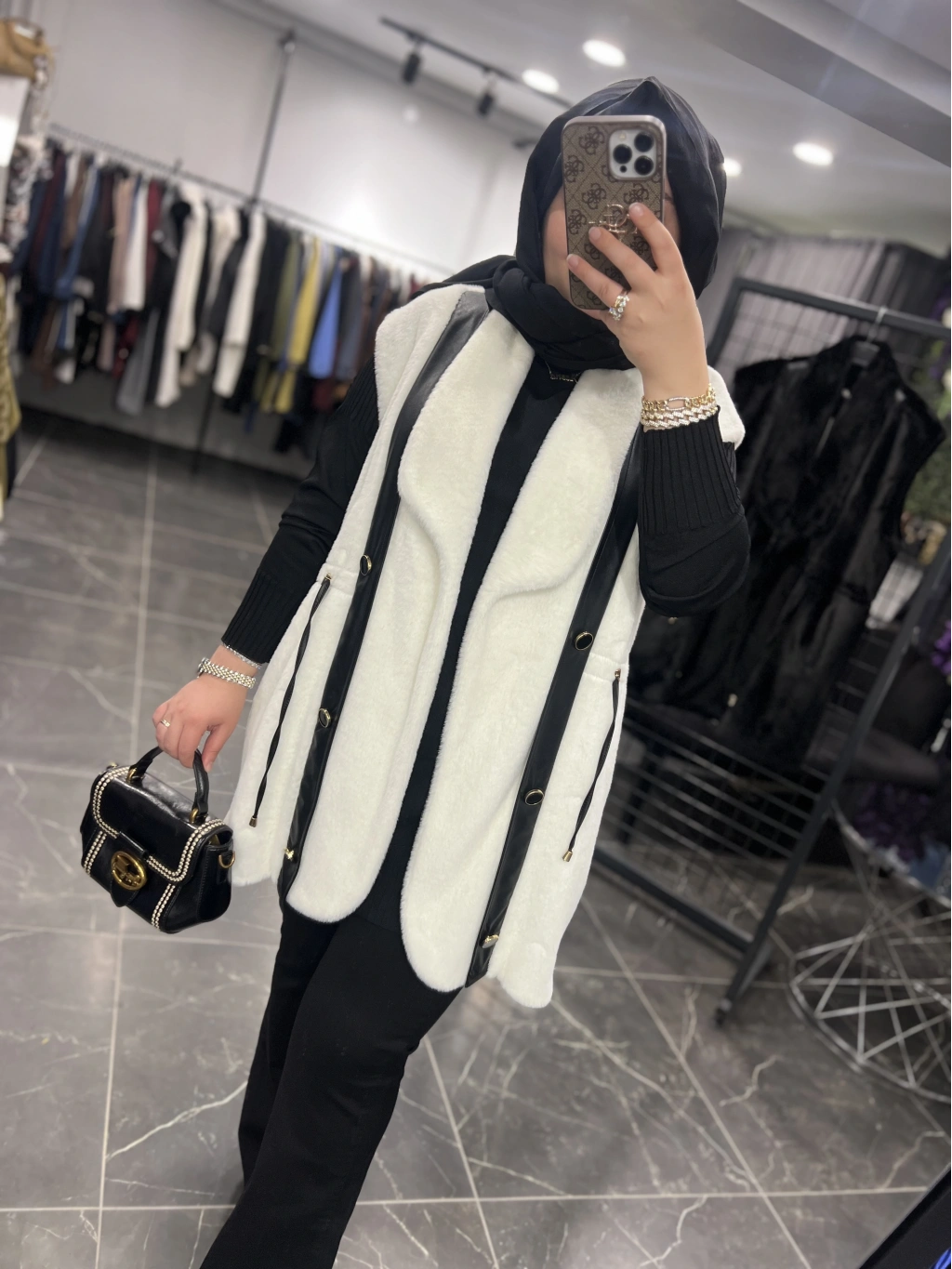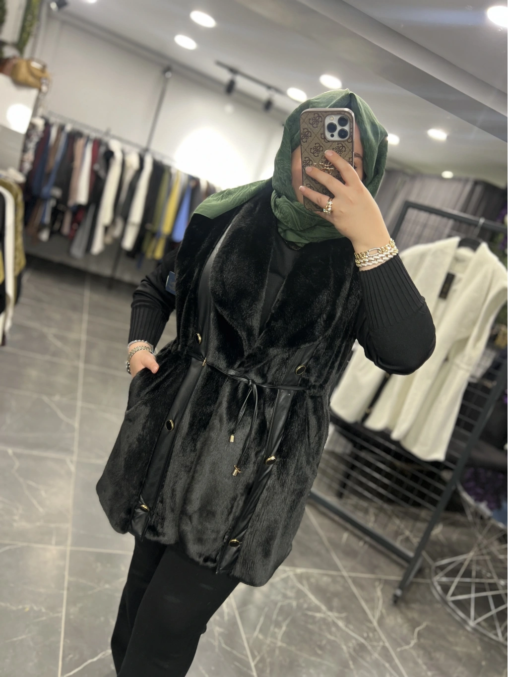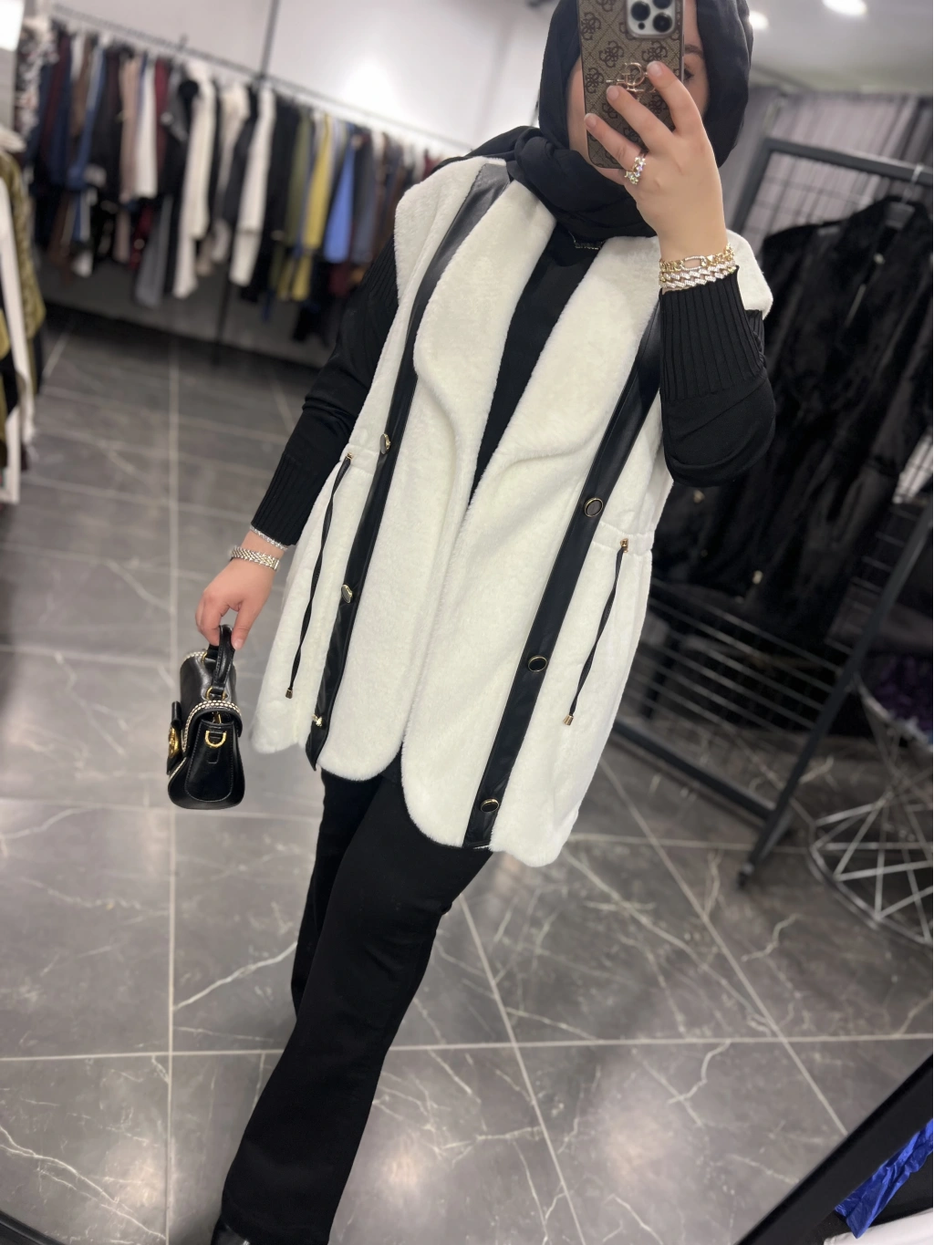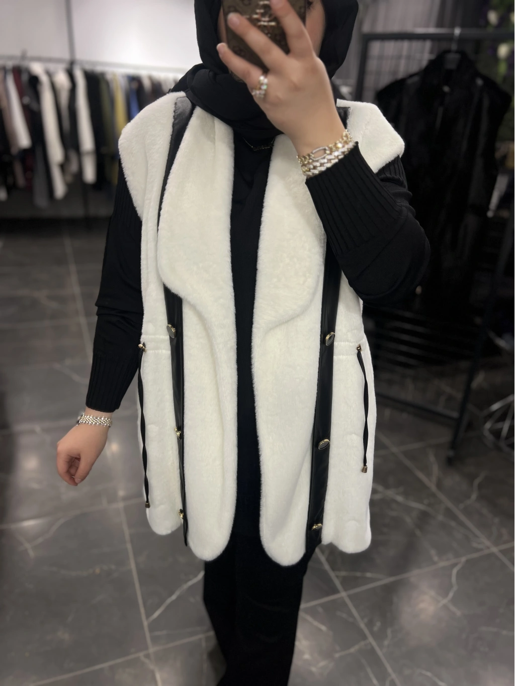 Solis Deri Detay Angora Yelek