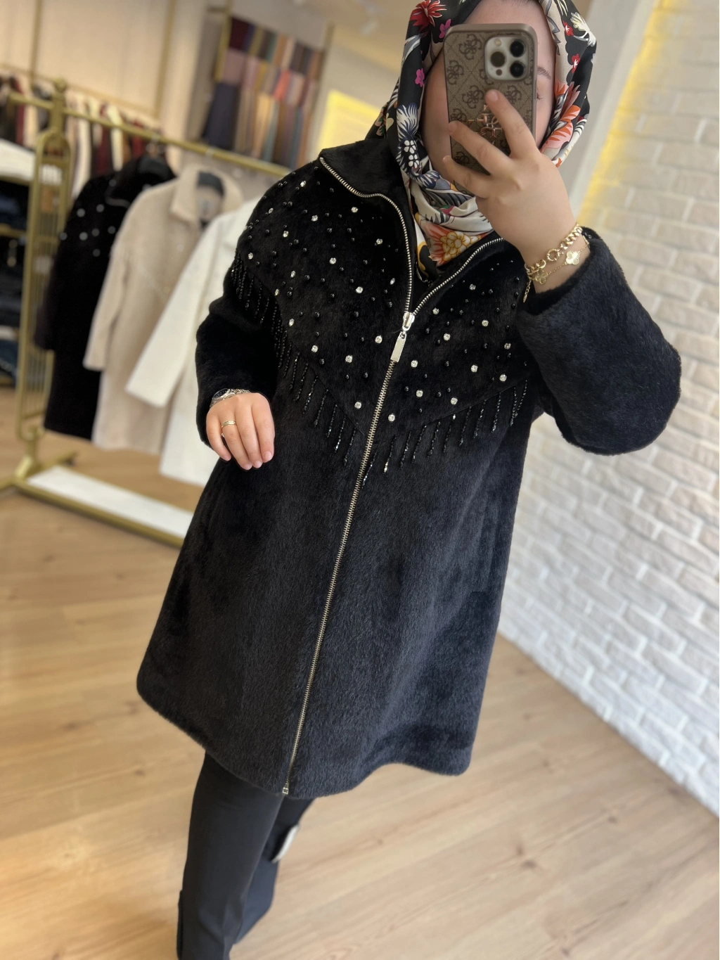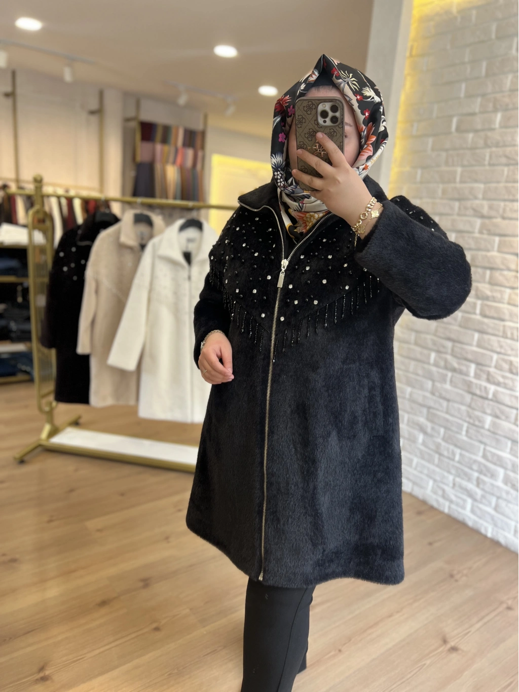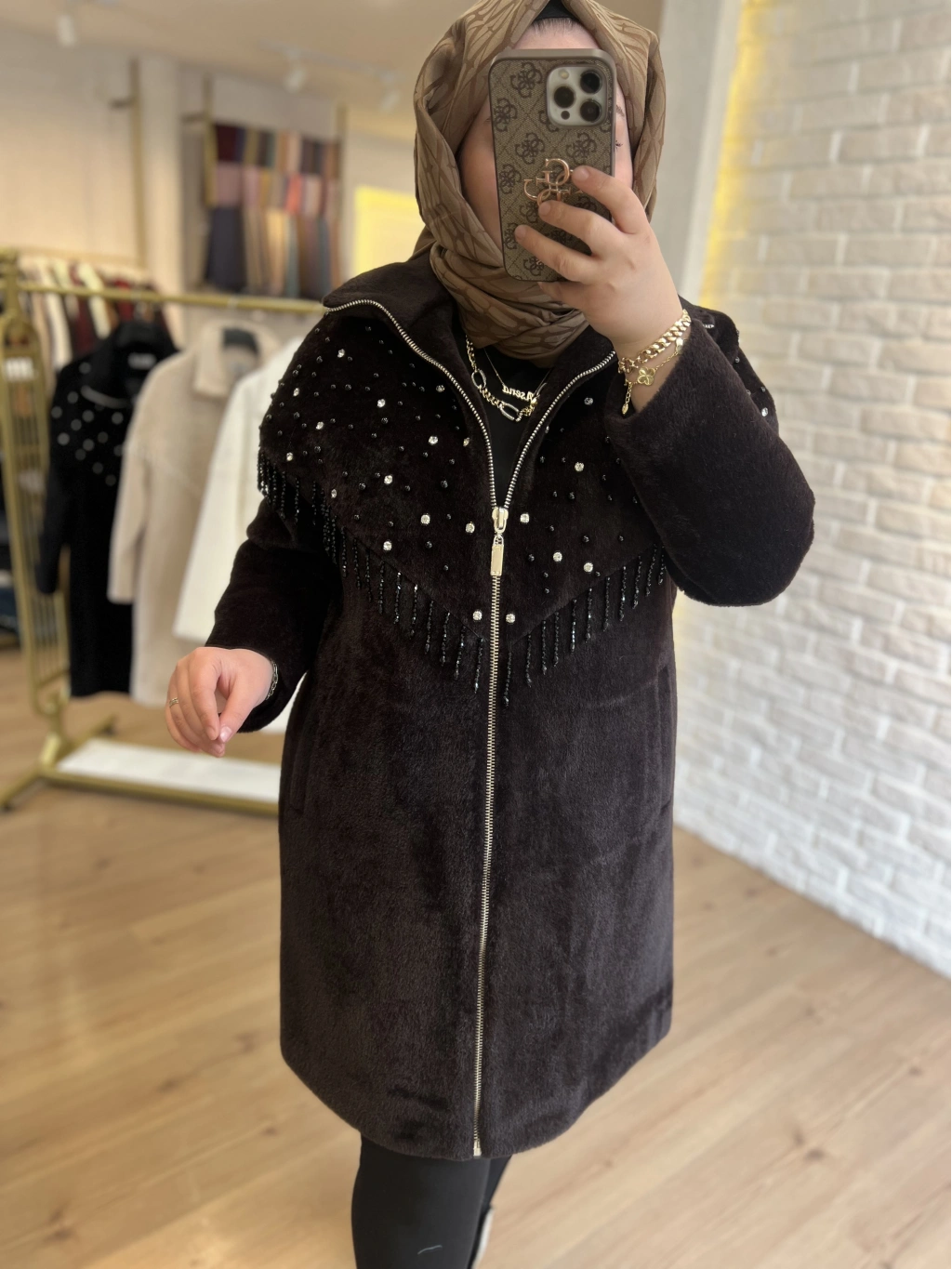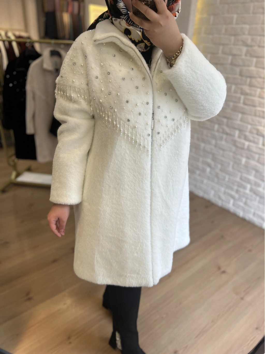 SOLİS Yaprak Taşlı Angora Kapitone Kaban