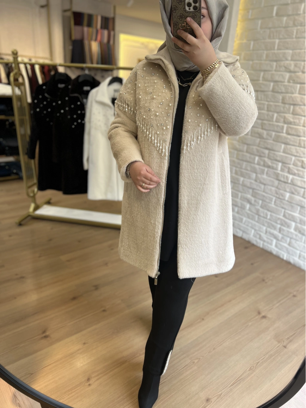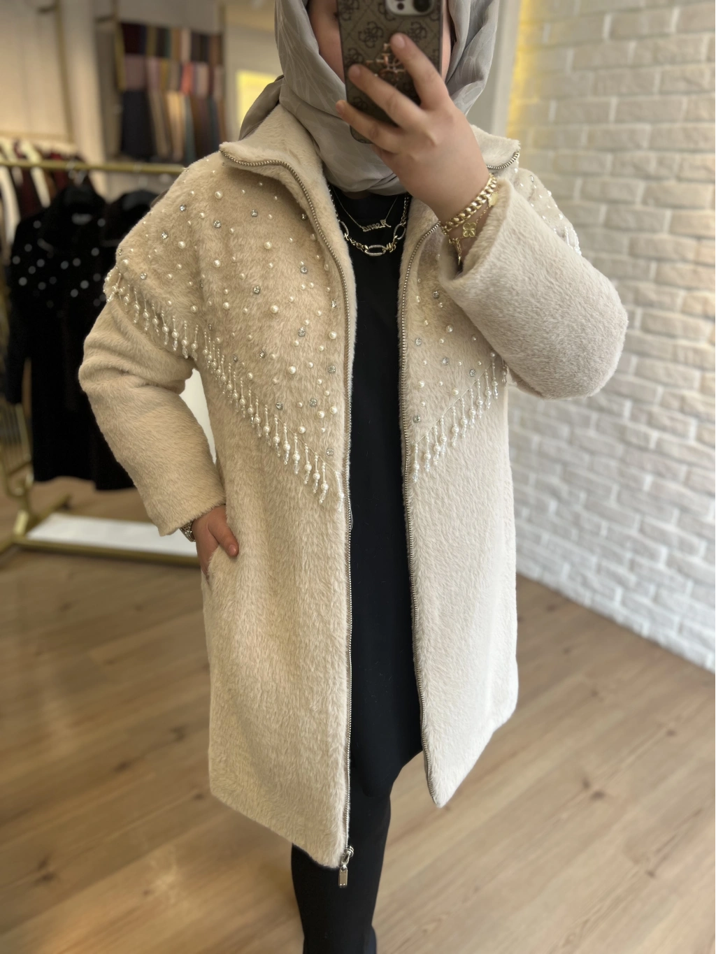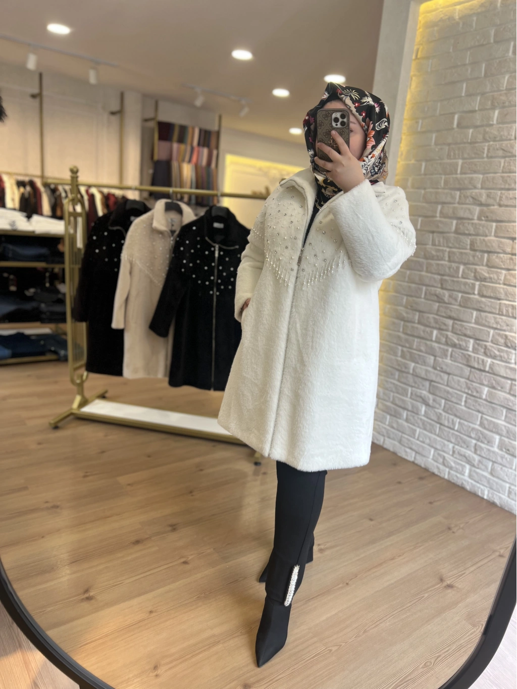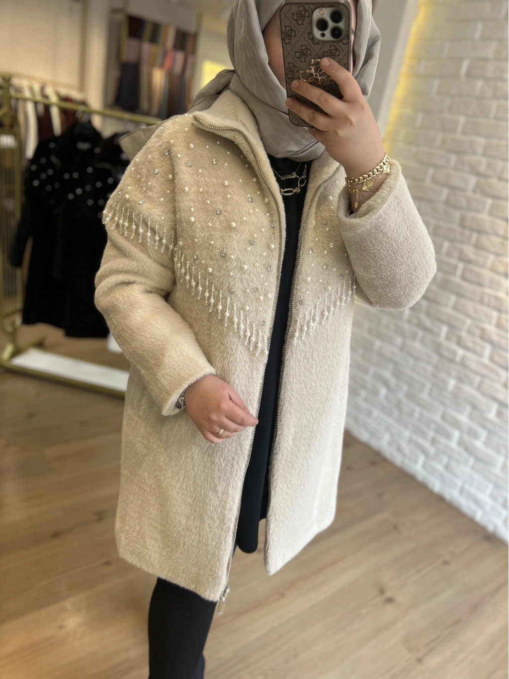 SOLİS Yaprak Taşlı Angora Kapitone Kaban