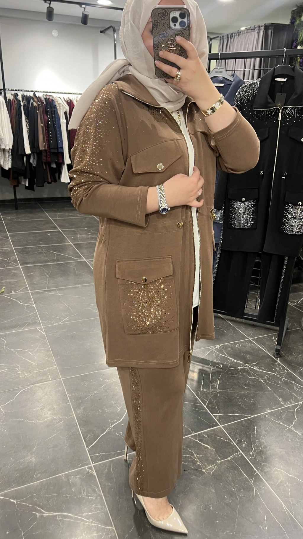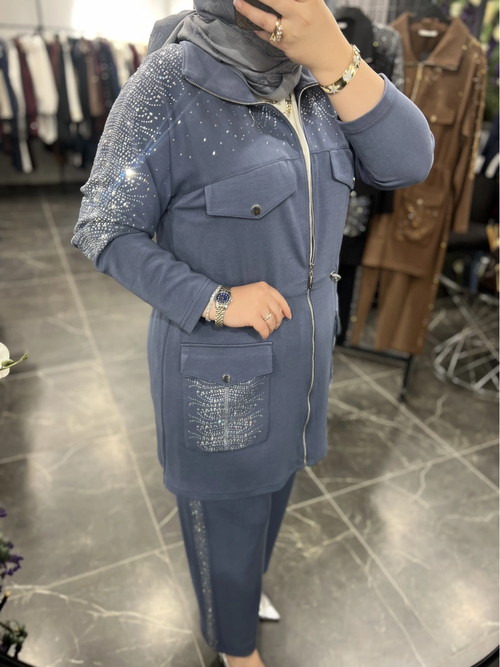 pantolon bel lastikli ve yüksek beldir ,