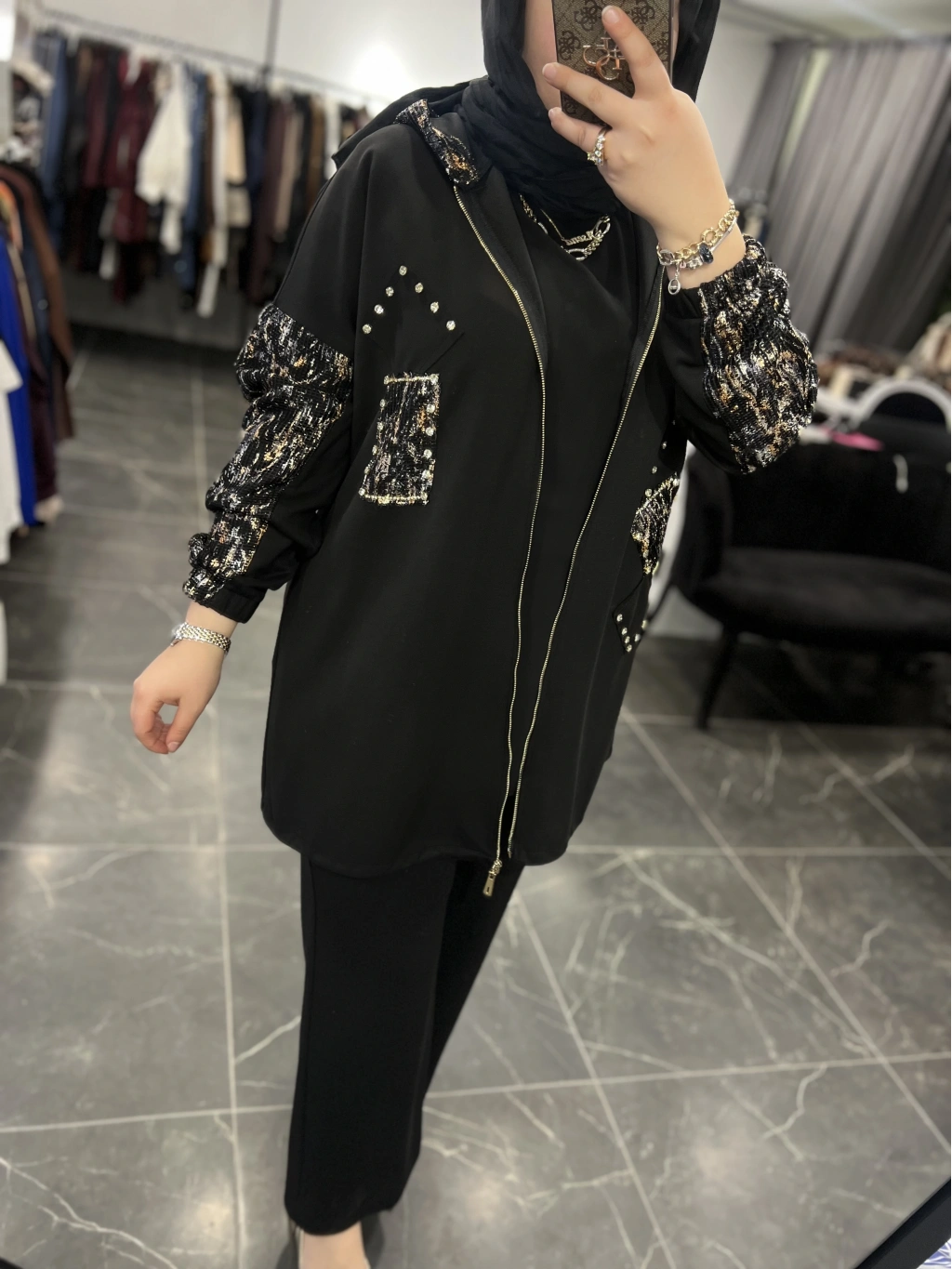 PUREVA Saçak Taşlı Ceketli İkili Takım