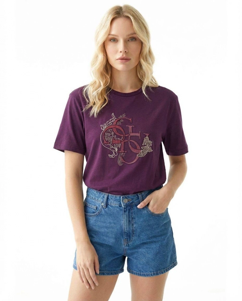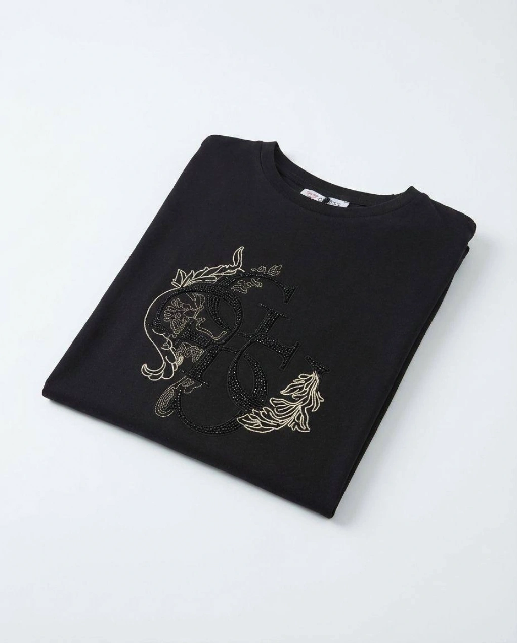 Taşlı ve Gold Nakışlı Tişört
